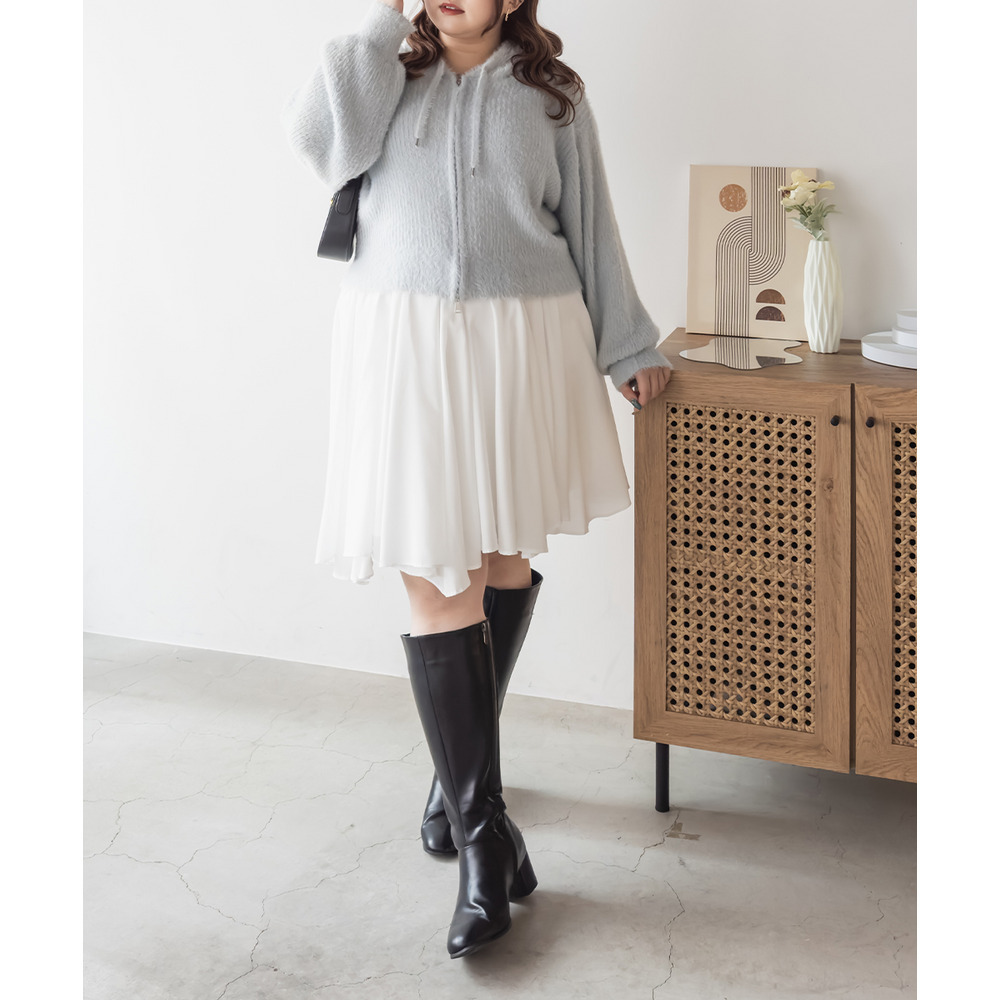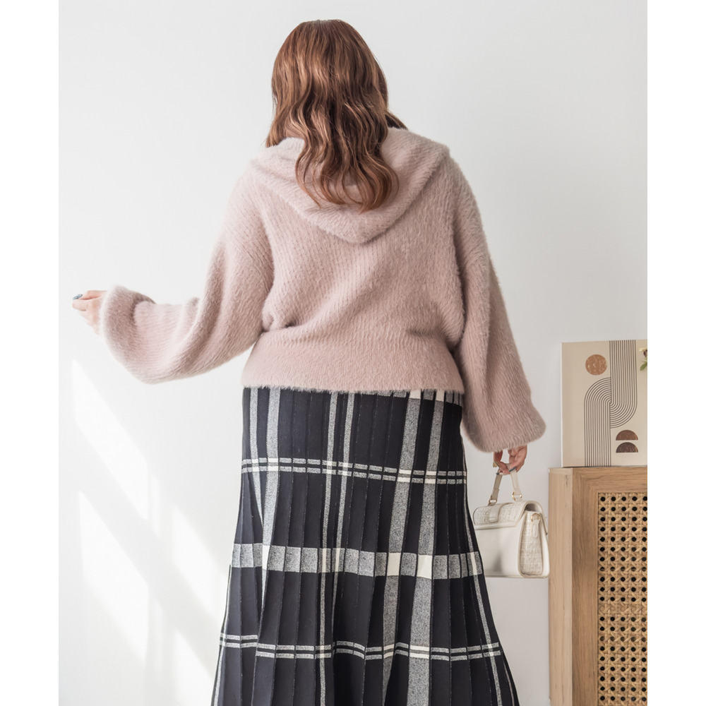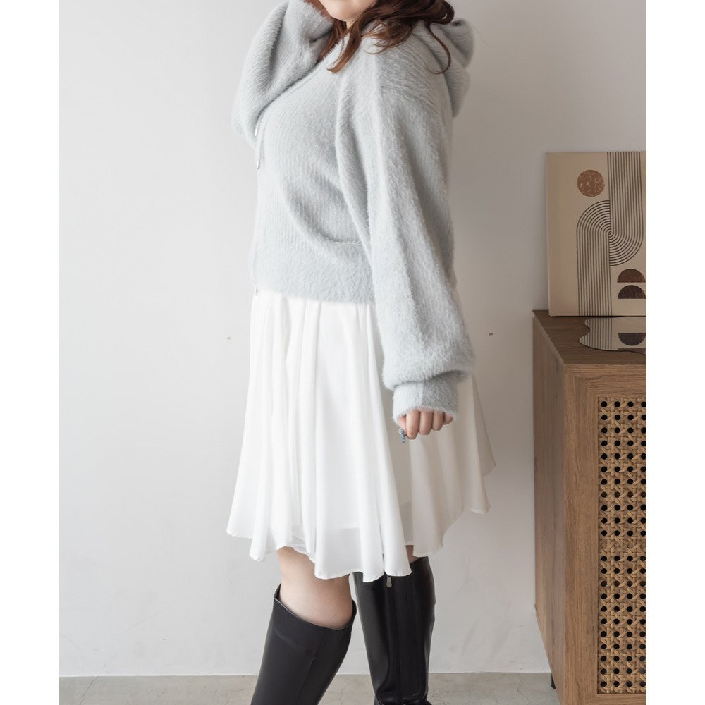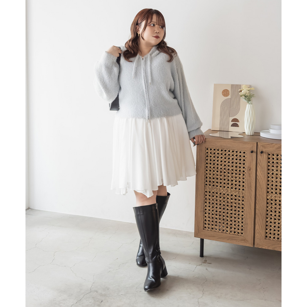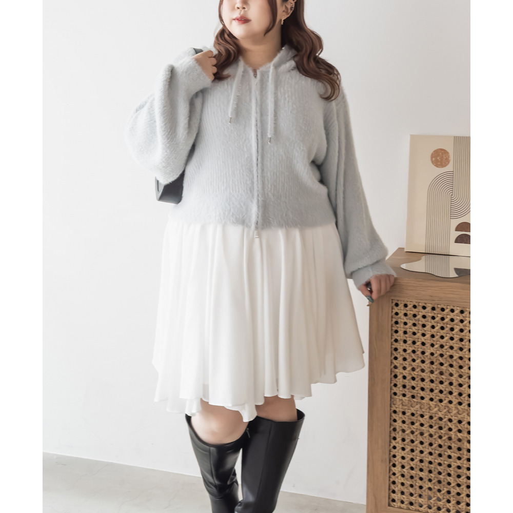 3Lサイズを着用してちょうどよく着られました!ゆるっとした落ち感のあるニットでとってもらくちんです!やわらかく伸縮性があって肌触りも抜群です♪程よい毛足の長さでボディラインも拾いづらいく、ふんわりフェミニンな雰囲気です!短すぎない丈感でスカートでもパンツでも羽織にしてワンピにも、どんなアイテムともコーデしやすいです!フード付きのアイテムはトレンド感たっぷりで1枚は持っておきたいアイテム!可愛いスカートと合わせてガーリースタイルにも、あえてハードなデニムと合わせるのもお勧めです◎ |