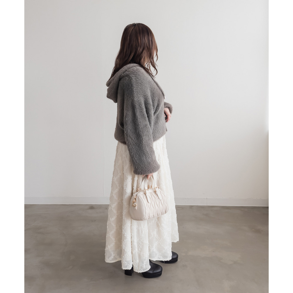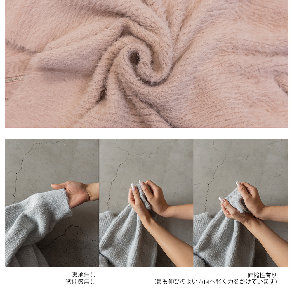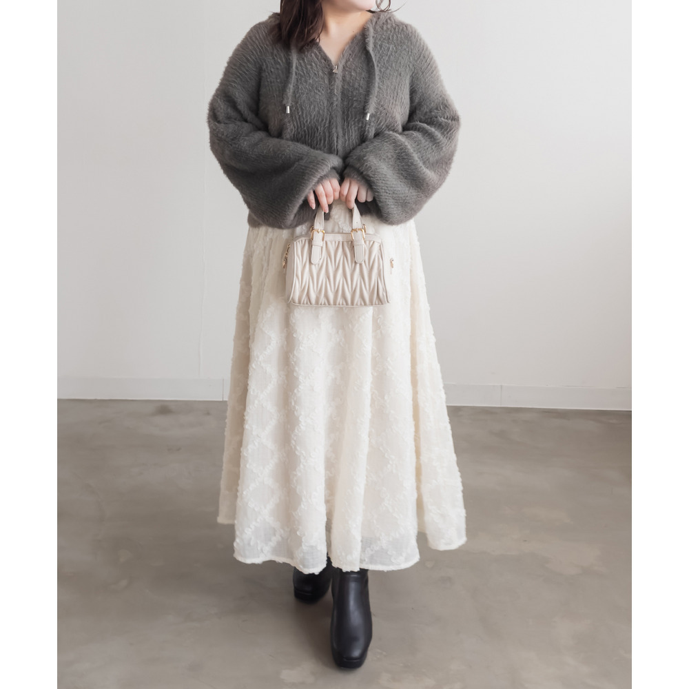 素材 | ■素材 ナイロン65%、ポリエステル35% ■裏地・透け感・伸縮性 裏地無し、透け感無し、伸縮性有り ■ポケット 無し ■生地感 柔らかくもちっとしたシャギーニット素材です。 |
