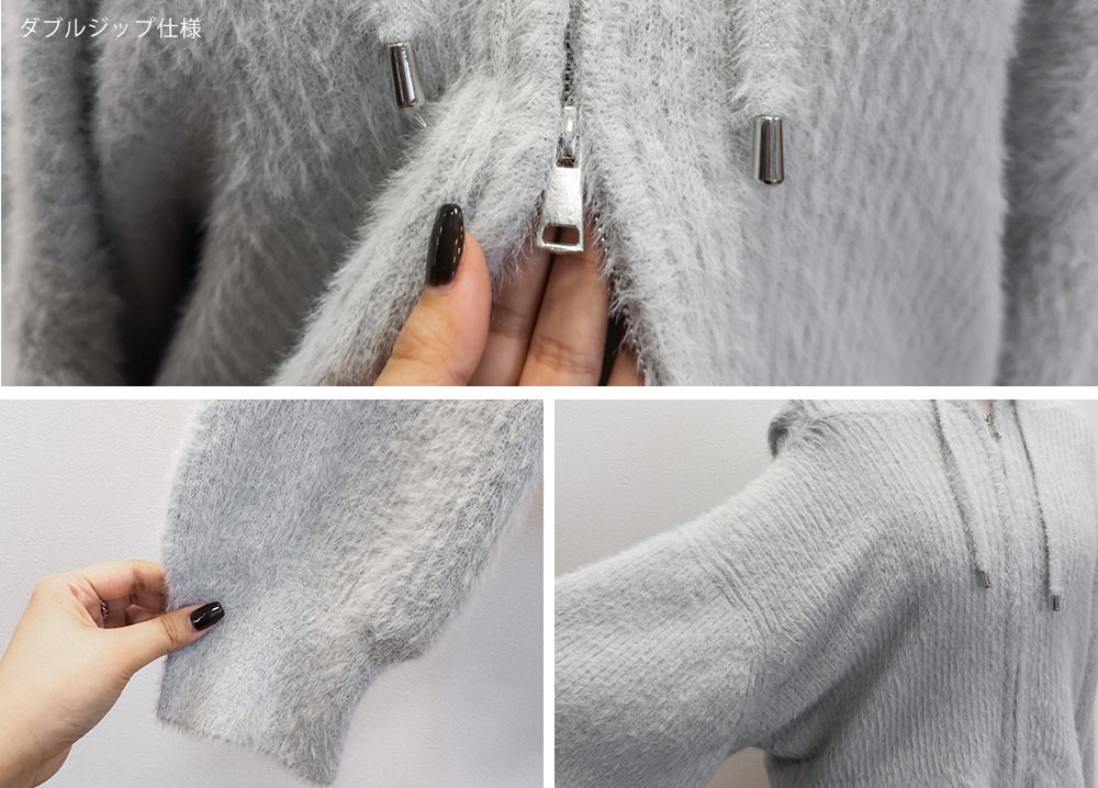 CLETTEオリジナルシャギーニットダブルジップパーカー