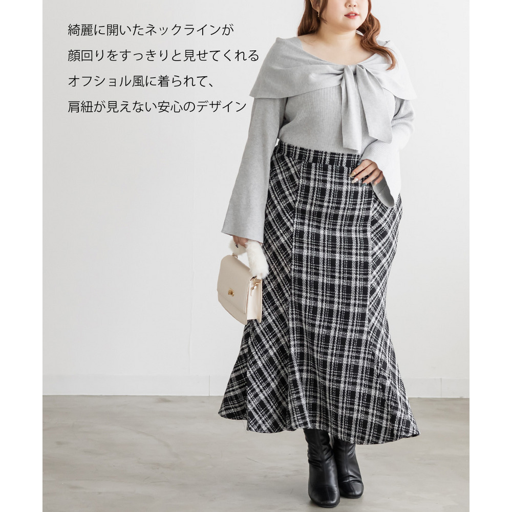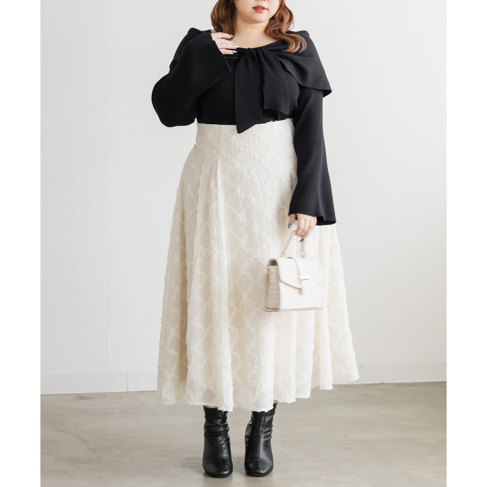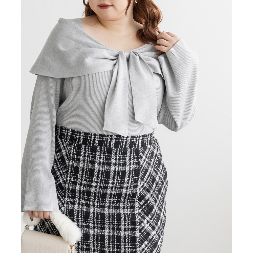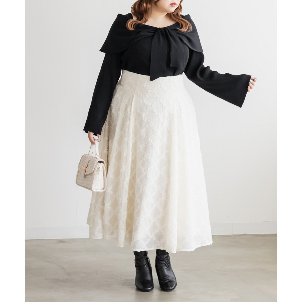 3Lサイズを着用しましたが、窮屈感なくちょうどいいサイズ感で着られました◎柔らかく伸びのいいニット素材で、厚みも少なくごわつかないのが嬉しいです!着心地もおしゃれも妥協しない1枚です!デコルテのおおきめリボンがコーデのアクセントになって、映えるデザインです♪袖丈は長めで袖口に向かって広がるフレアスリーブが手元も美人見えしてくれます。シンプルながらアクセントのある可愛いデザインでデイリー使いにもお出かけやデートにもぴったりです!