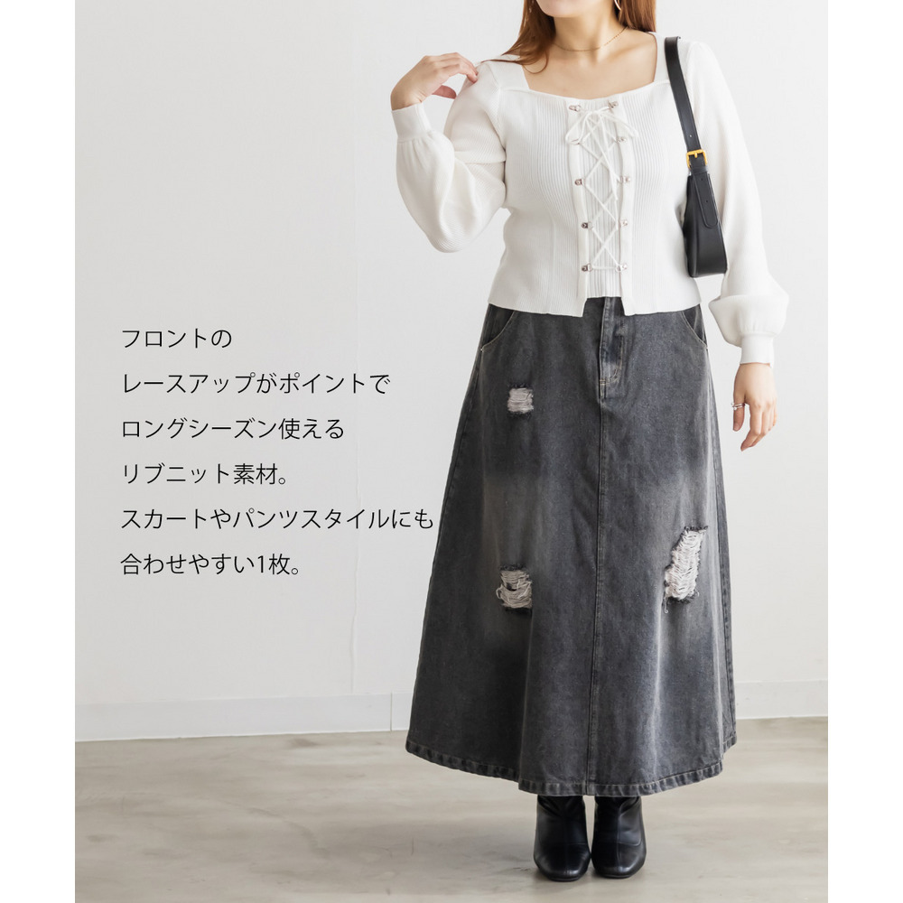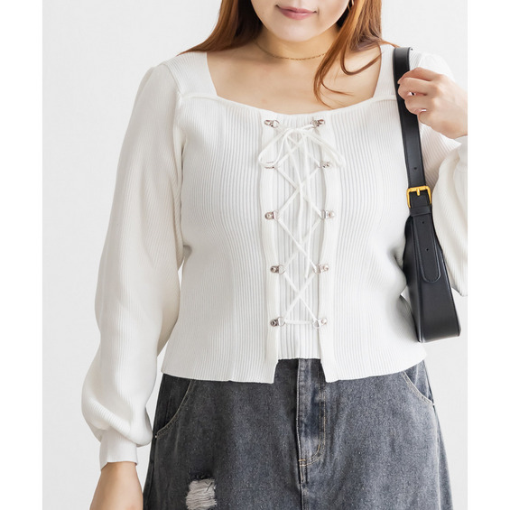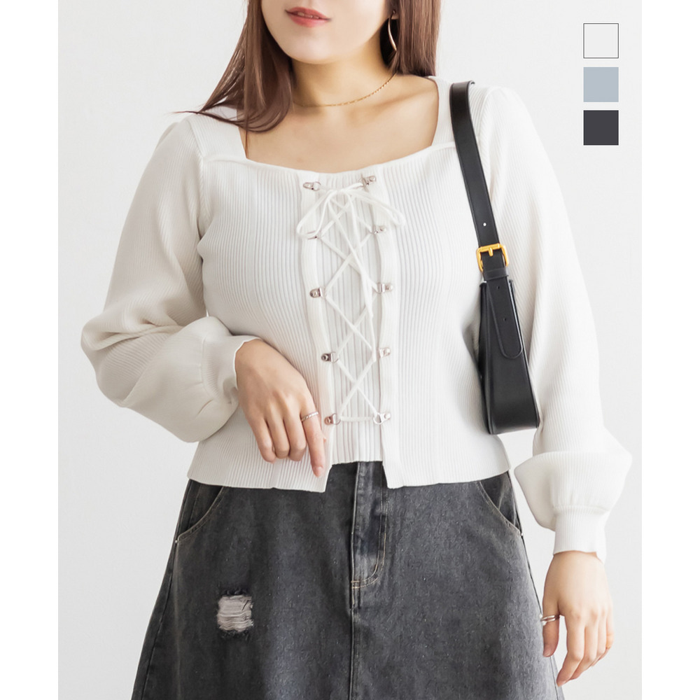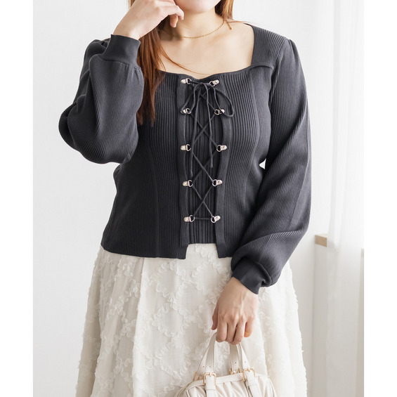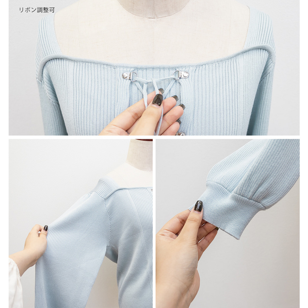 • CLETTEオリジナルスクエアネックレースアップニット2