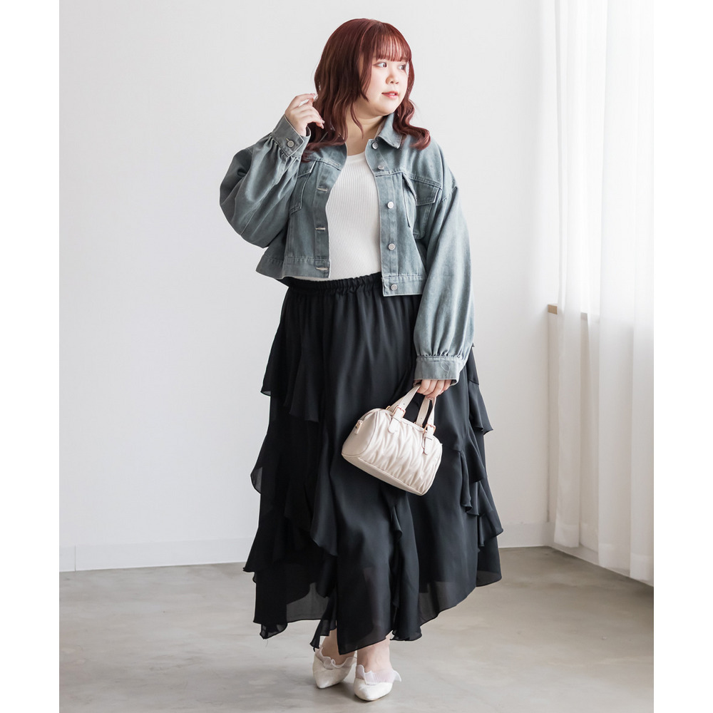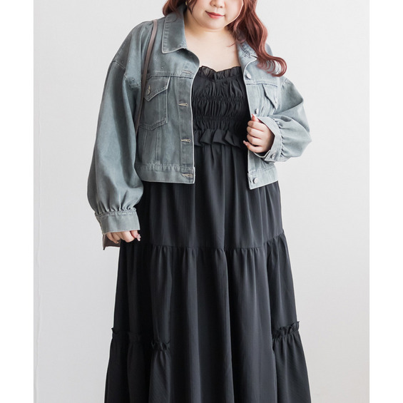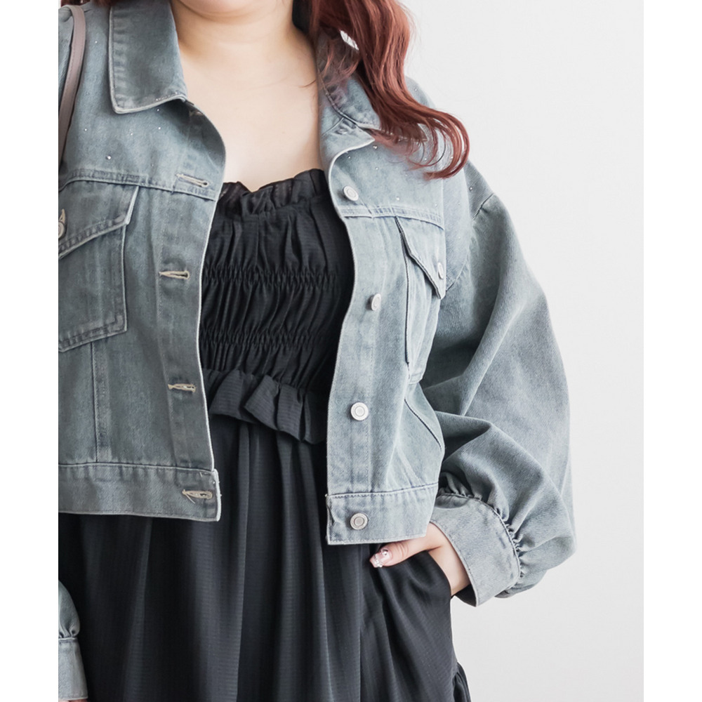 3Lサイズを着てちょうどいい着心地でした。少し軽めのデニムで楽な着心地でした!ゆるっと着ても可愛いと思うので好みに合わせてサイズを選んでみてもいいかもしれないです♪着回ししやすいちょうどいい丈感で、羽織としてロングシーズン使えるGジャンは1枚は持っておきたいマストアイテムです!カジュアル感のあるアイテムですが、ラインストーンがついていてさりげなくキラキラするのがポイントです◎キレイめなスラックスや甘めのスカートと合わせることでカジュアルダウンしすぎないコーディネートになってかわいいです! |