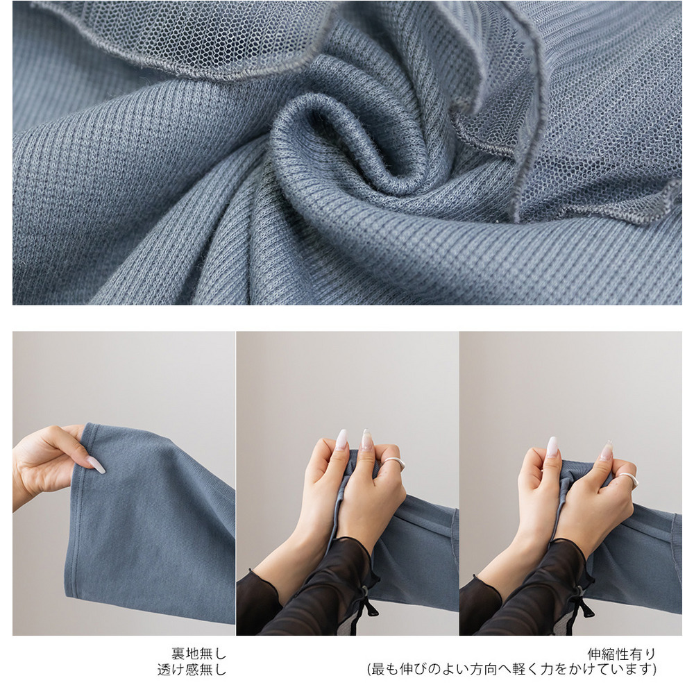 素材 ■素材 ポリエステル60%、綿35%、ポリウレタン5% ■裏地・透け感・伸縮性 裏地無し、透け感無し、伸縮性有り ■ポケット 無し ■生地感 本体:薄手のさらっとしたニットです。 別布:表面感のある柔らかい薄手の素材です。