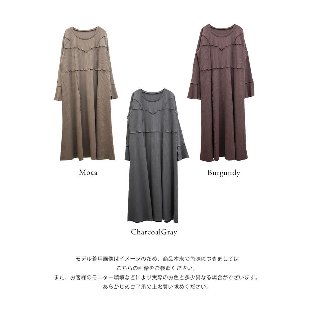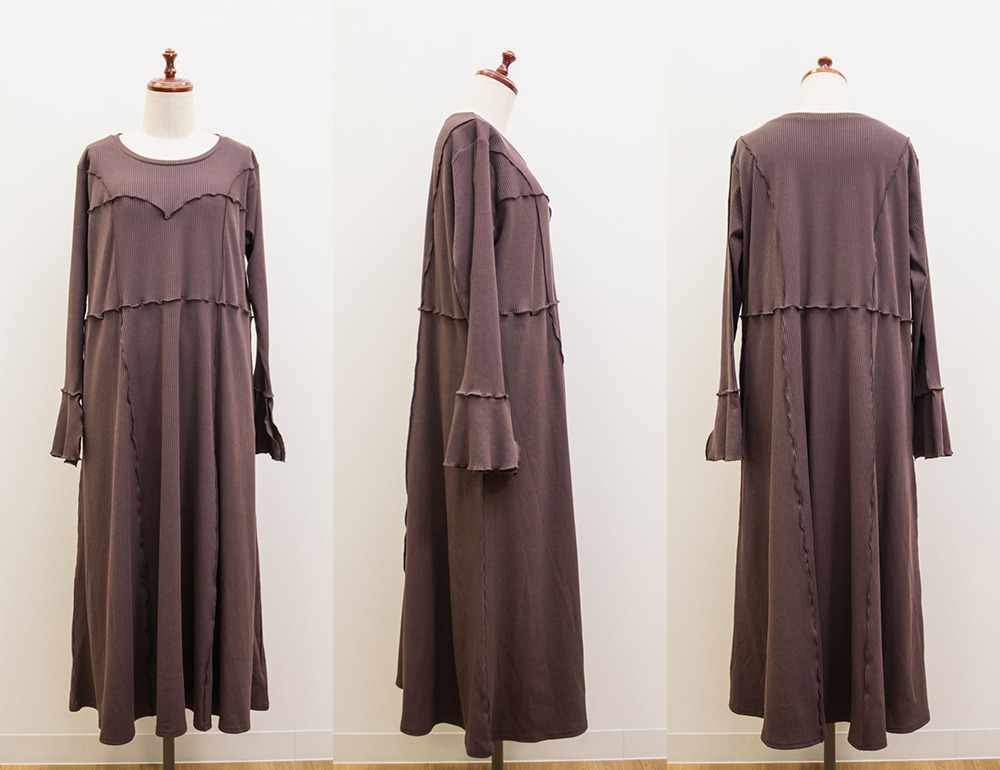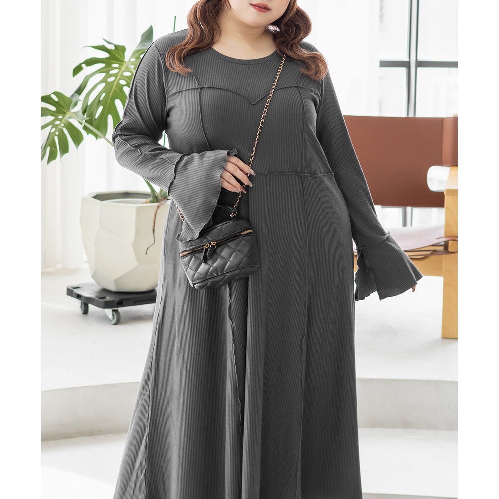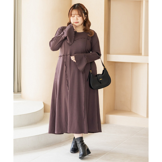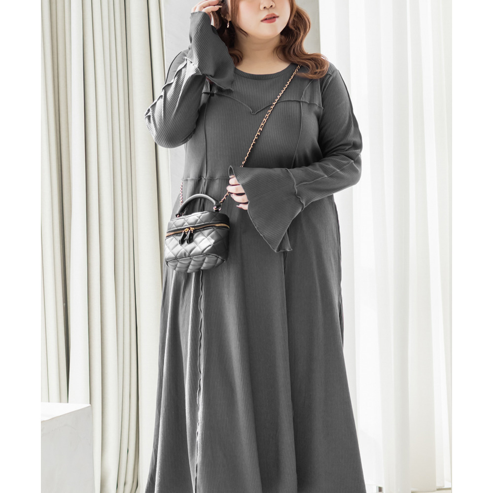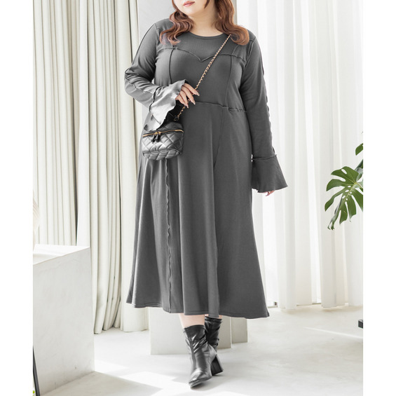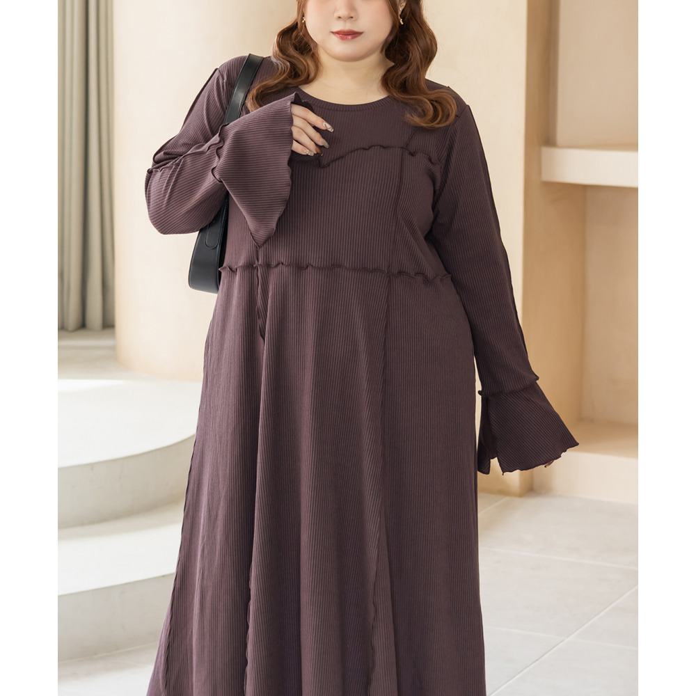 3Lを着用してちょうどいいサイズでした。伸縮性のあるリブ素材だから、着心地とっても楽ちんです!楽だけど、メローラインのおかげですっきりと着やせできるとっても優秀なワンピースです◎メローはワンピースになじむカラーで、カジュアルな生地感だけど大人っぽく洗練された雰囲気で着られました。スリット入りの袖も可愛いです!さらっと着られておしゃれな印象になれて、真夏以外のロングシーズン使えるのもおすすめポイントです!