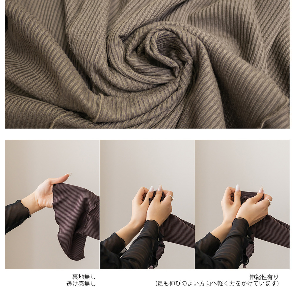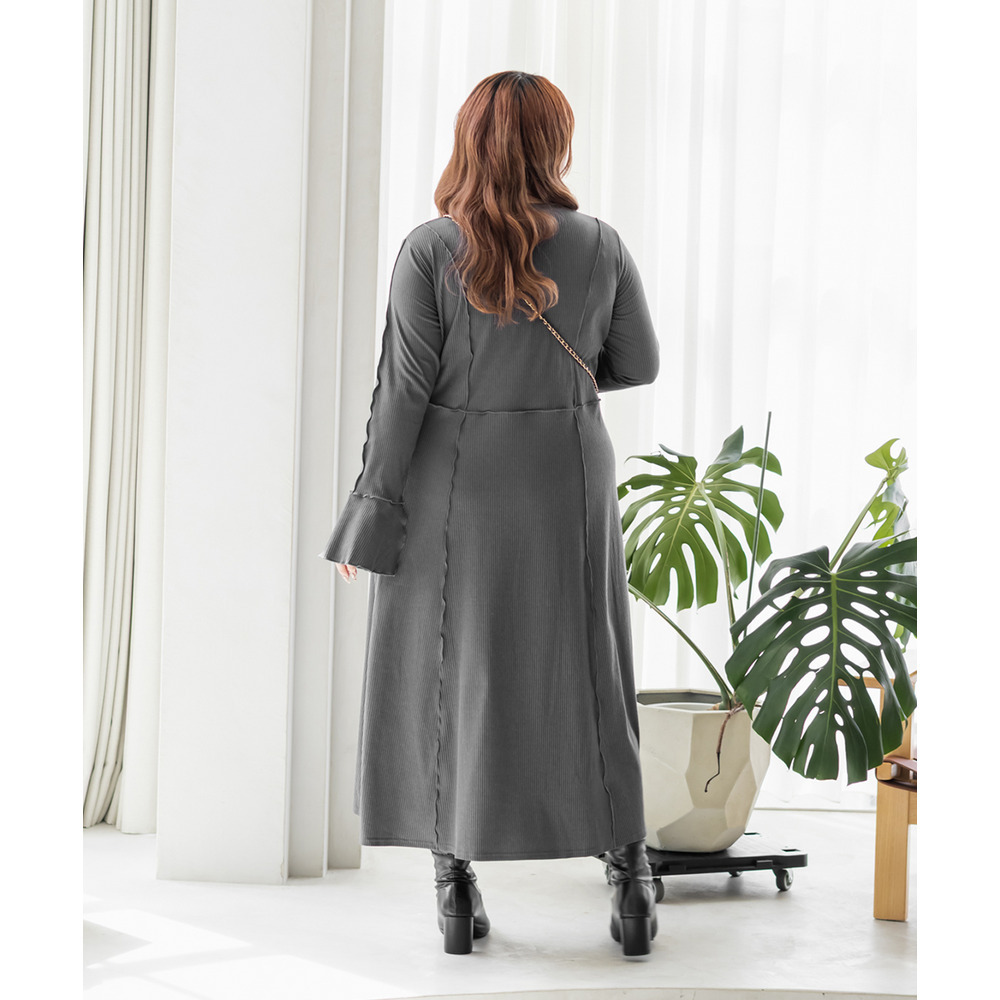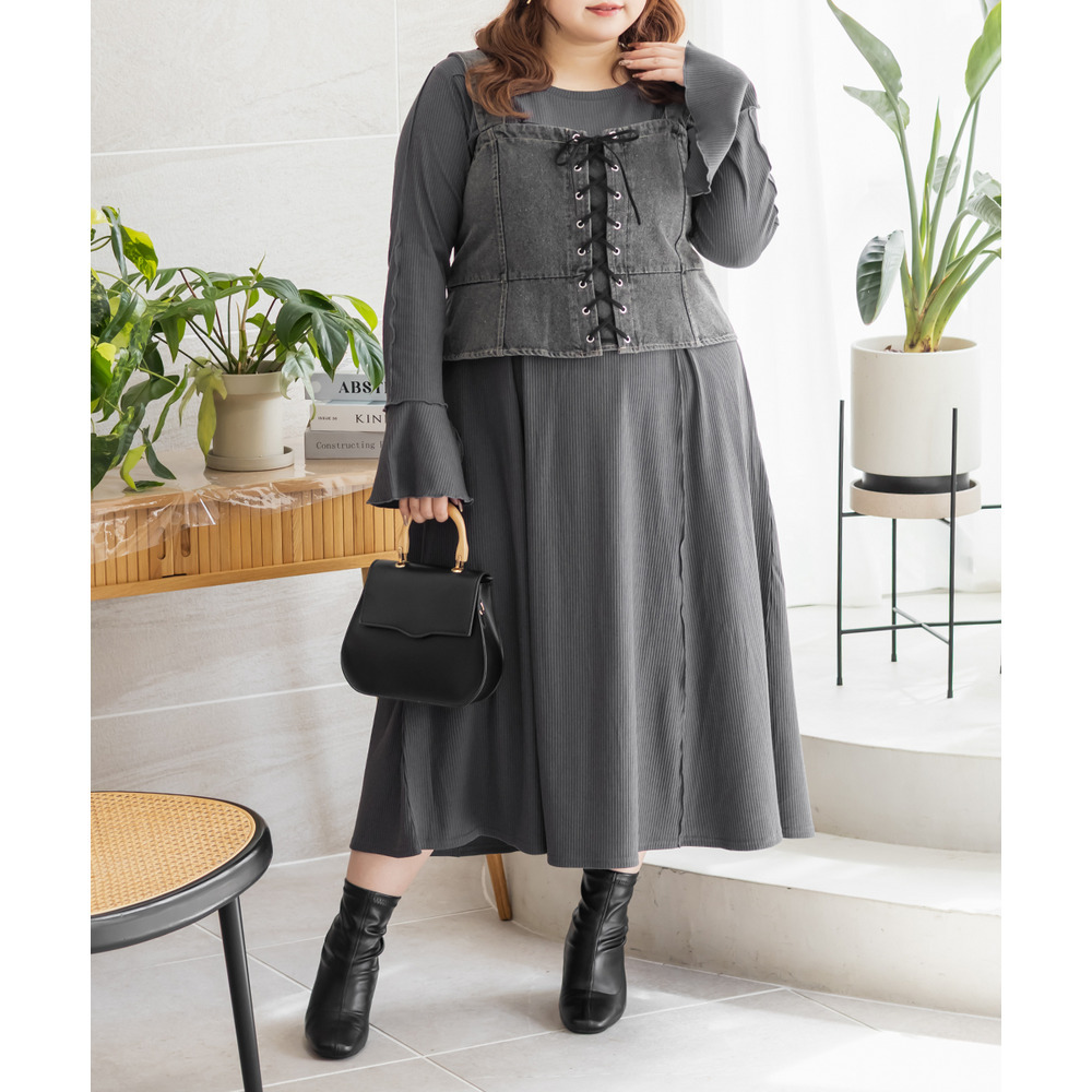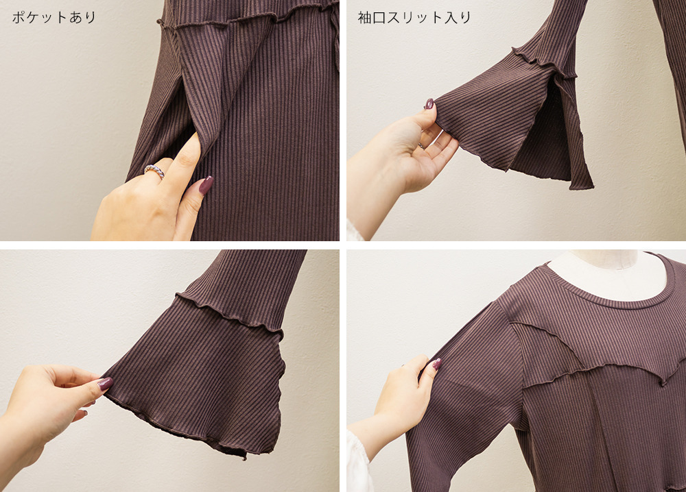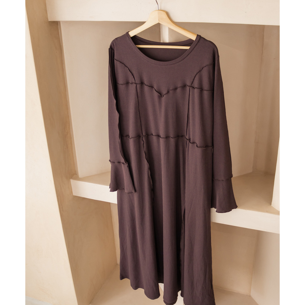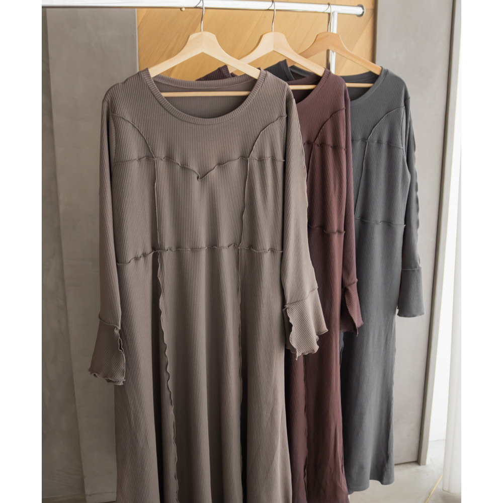 3Lを着用してちょうどいいサイズでした。伸縮性のあるリブ素材だから、着心地とっても楽ちんです!楽だけど、メローラインのおかげですっきりと着やせできるとっても優秀なワンピースです◎メローはワンピースになじむカラーで、カジュアルな生地感だけど大人っぽく洗練された雰囲気で着られました。スリット入りの袖も可愛いです!さらっと着られておしゃれな印象になれて、真夏以外のロングシーズン使えるのもおすすめポイントです!
