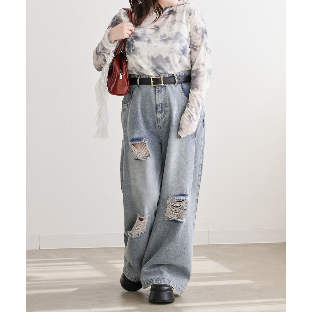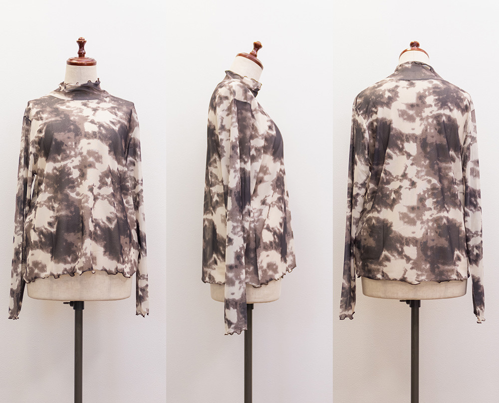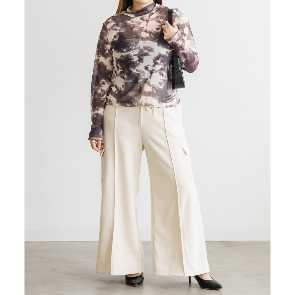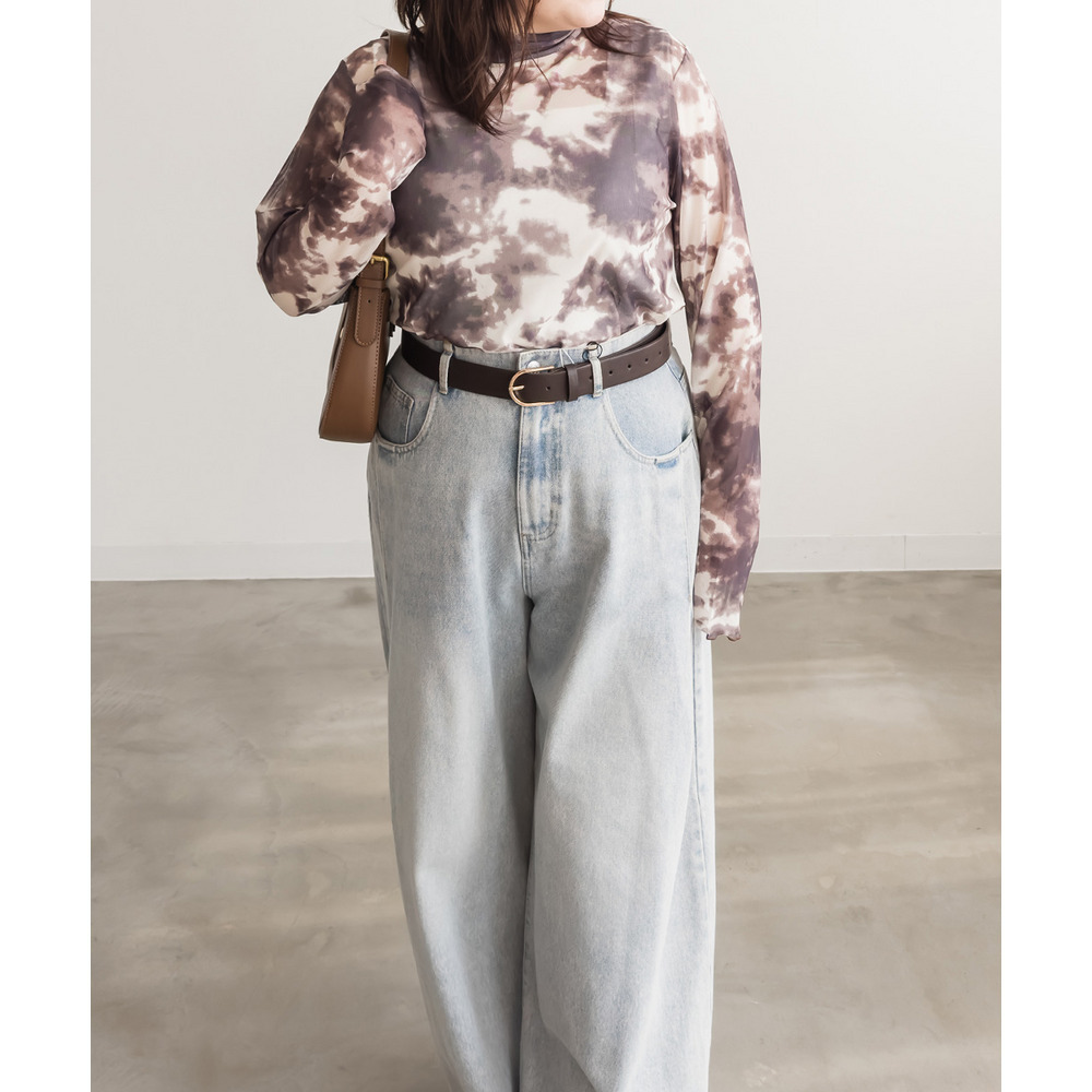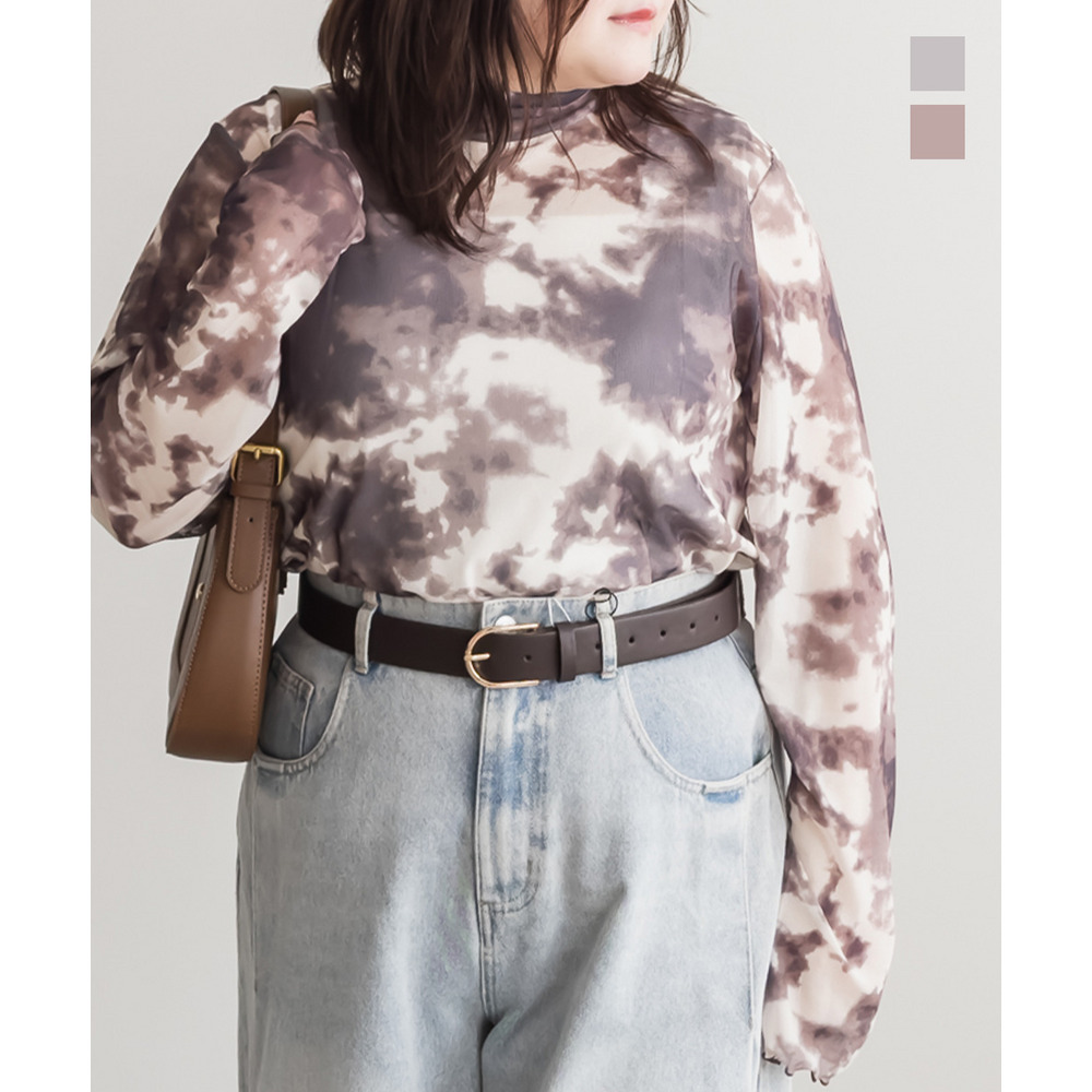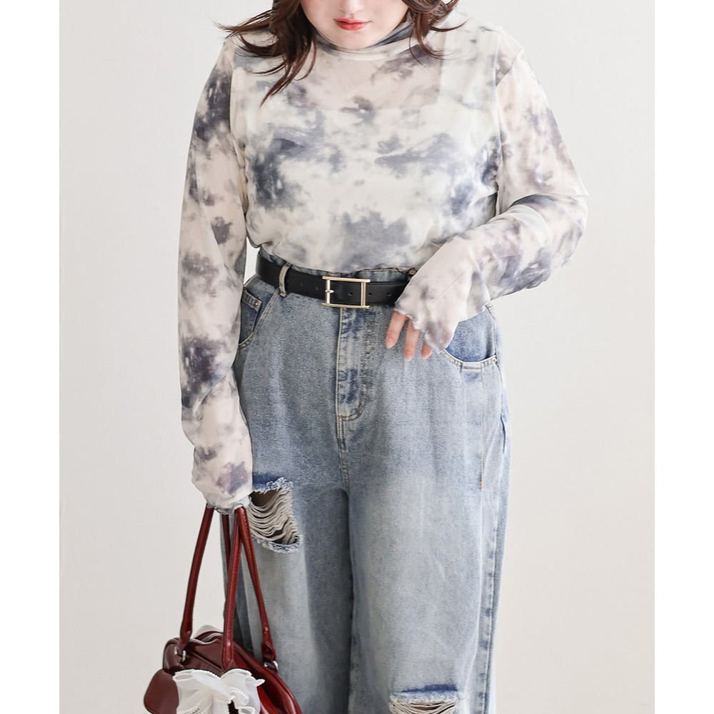 3Lサイズを着用して、ちょうどいい着心地でした♪ 伸縮性のある素材で窮屈さを感じにくいのがポイントです◎ピタッとしすぎないのも嬉しいです。 程よいシアー感があり、レイヤードスタイルにもぴったりです。柔らかいマーブル柄がコーデのアクセントになり、シンプルなボトムスと合わせるだけでこなれ感のある着こなしに♪ インナーとしてはもちろん、1枚で主役級のトップスとしても活躍するアイテムです。
