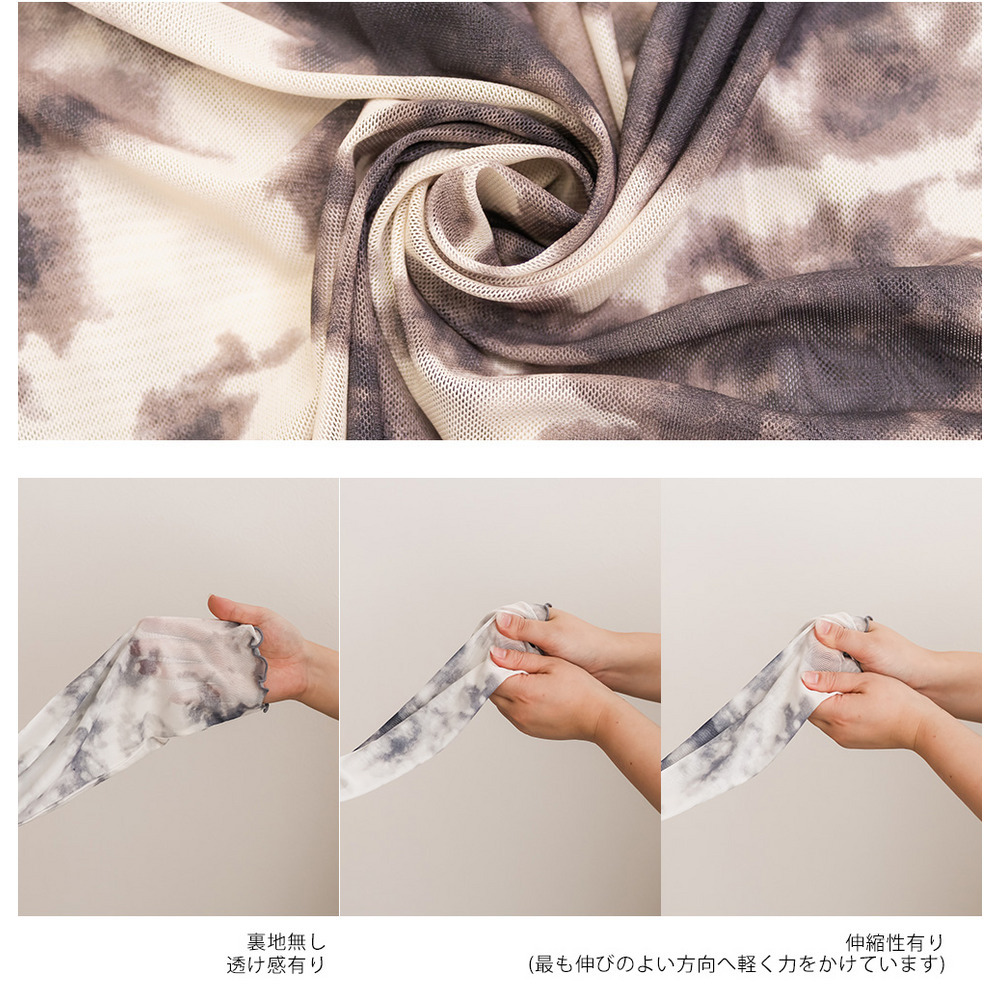 素材 ■素材 ポリエステル95%、ポリウレタン5% ■裏地・透け感・伸縮性 裏地無し、透け感有り、伸縮性有り ■ポケット 無し ■生地感 伸縮性のあるさらさら素材です。
