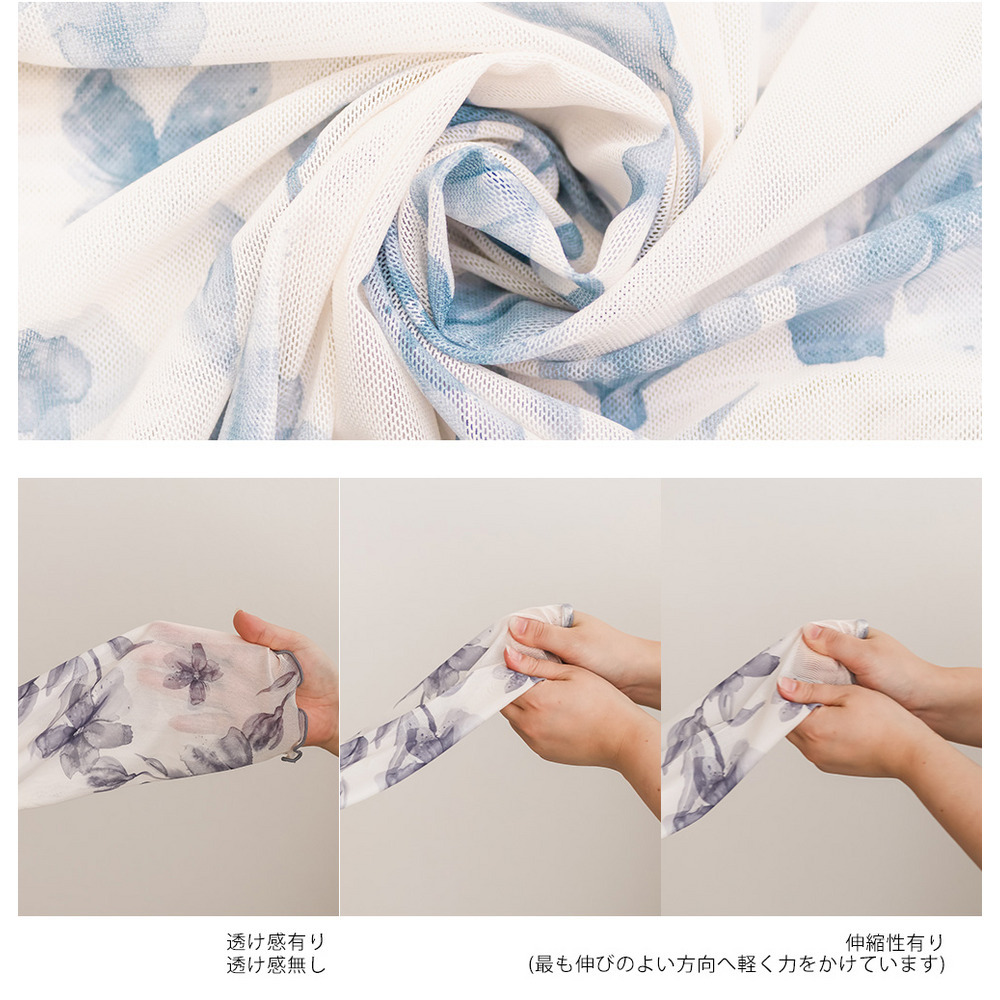 素材 | ■素材 ポリエステル95%、ポリウレタン5% ■裏地・透け感・伸縮性 裏地無し、透け感有り、伸縮性有り ■ポケット 無し ■生地感 伸縮性のあるさらさら素材です。 |