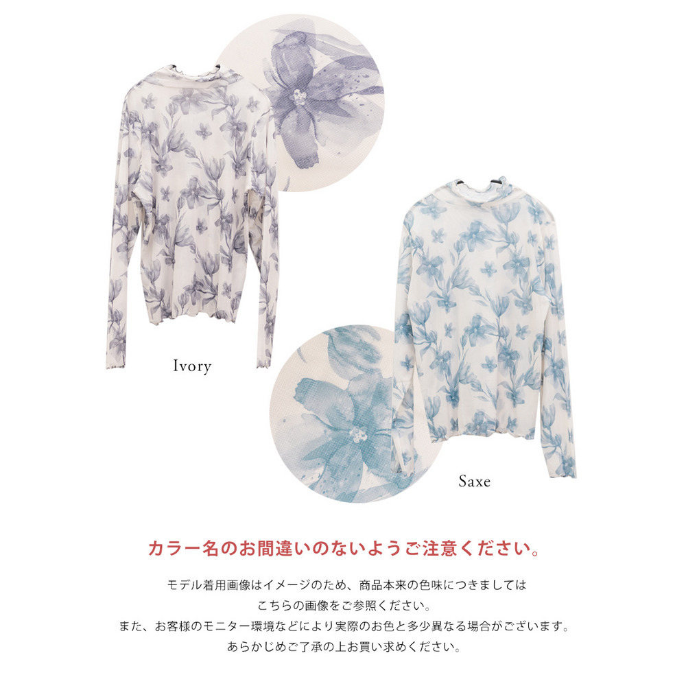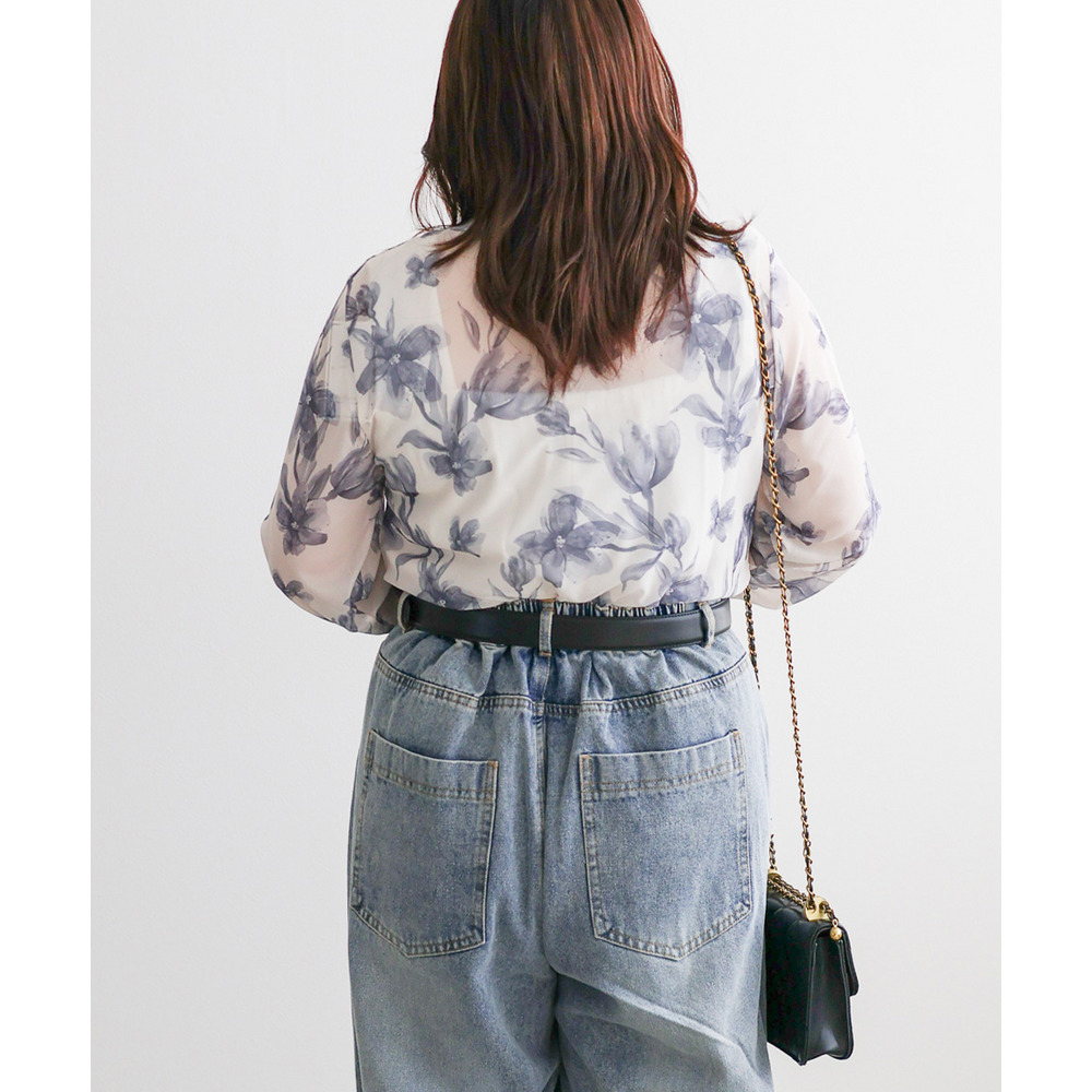 3Lサイズを着用して、ゆとりのある着心地でした♪ カラー名が分かりにくいので、商品ページをよく見てご購入をお勧めします!伸縮性のある素材で、身体に馴染むようなフィット感がありながら、窮屈さを感じにくいのが嬉しいポイントです◎ 程よいシアー感があり、レイヤードスタイルにもぴったりです!柔らかいぼかし花柄がフェミニンでコーデのアクセントになり、シンプルなボトムスと合わせるだけでこなれ感のある着こなしになります。 インナーとしてはもちろん、1枚で主役級のトップスとしても活躍するアイテムです! |