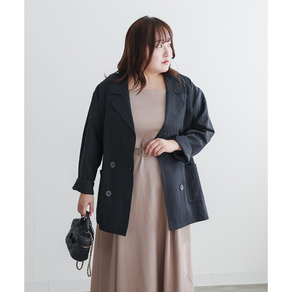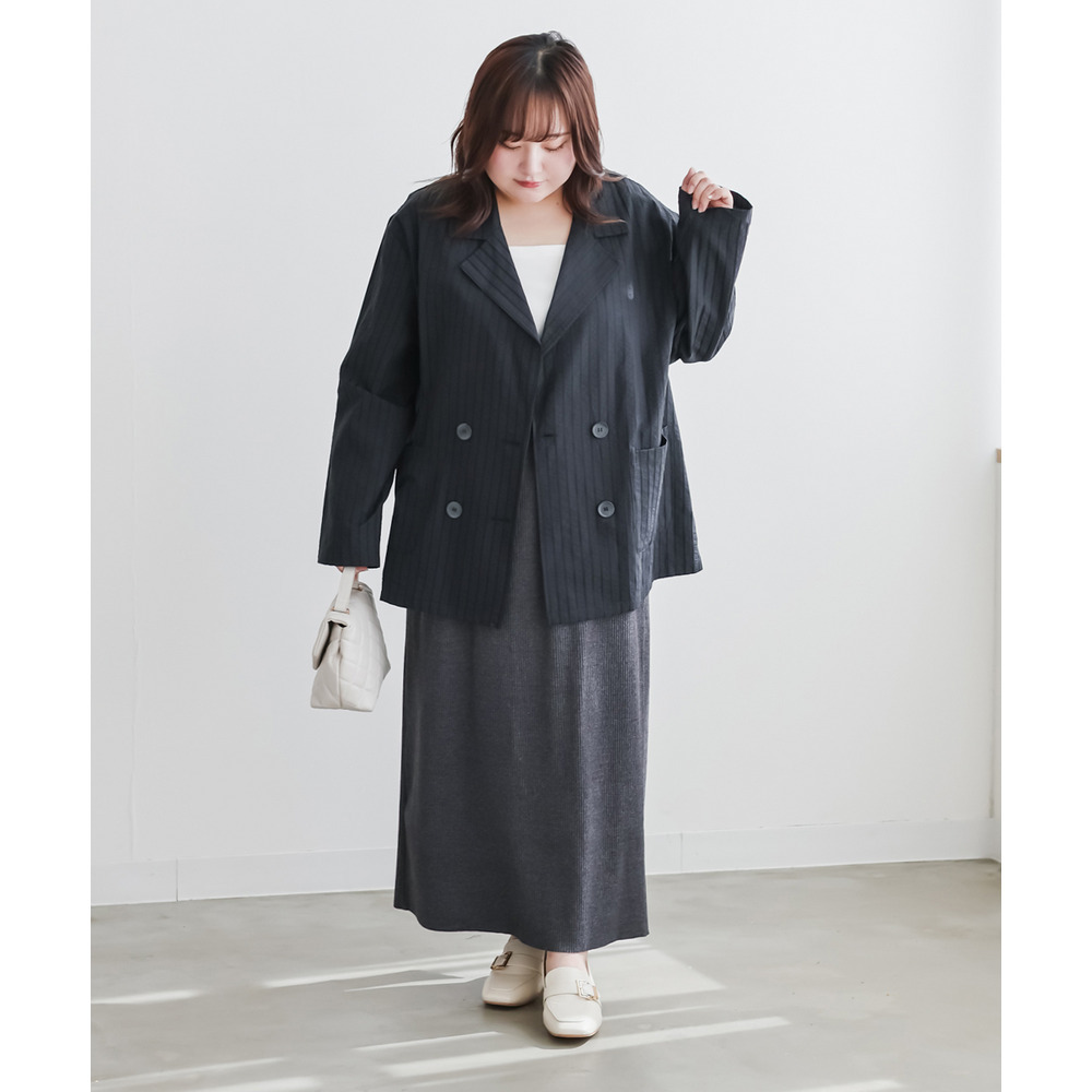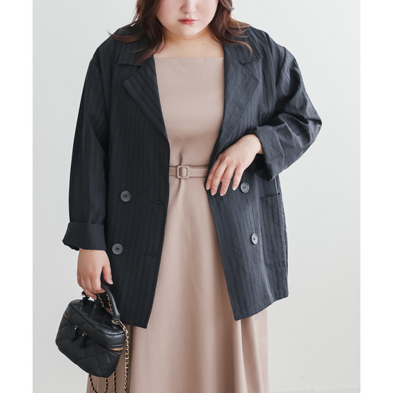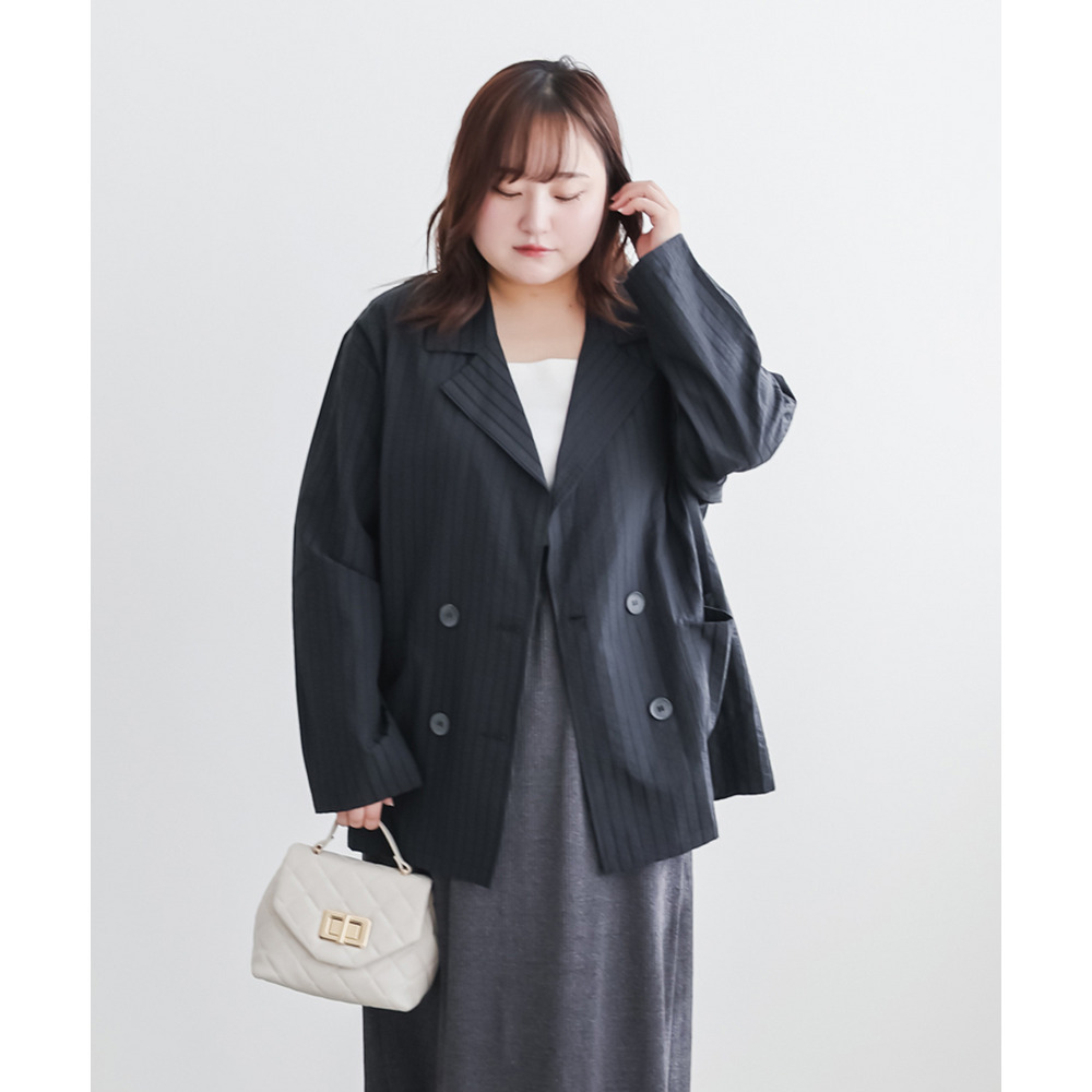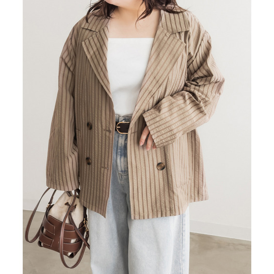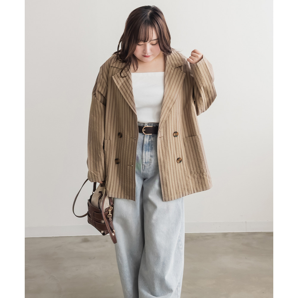 3Lサイズを着用して、程よくゆったりとしたサイズ感でした♪ お尻が隠れるくらいの丈感で、さっと羽織るだけでこなれた雰囲気になります◎ 軽やかな生地感で、長時間着てもストレスフリーな着心地でした! カジュアルにもきれいめにも合わせやすいのが嬉しいポイントで、デニムと合わせてラフに着こなすのはもちろん、スラックスやスカートと合わせてオフィスカジュアルにもぴったりな万能ジャケットです。ストライプ柄が大人っぽくこなれ感たっぷりで、肌寒い季節の羽織に大活躍します! |