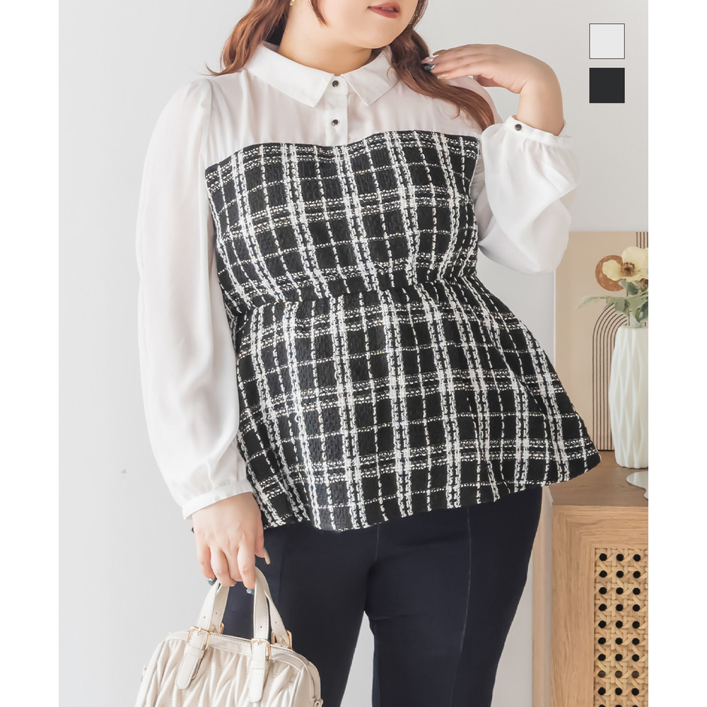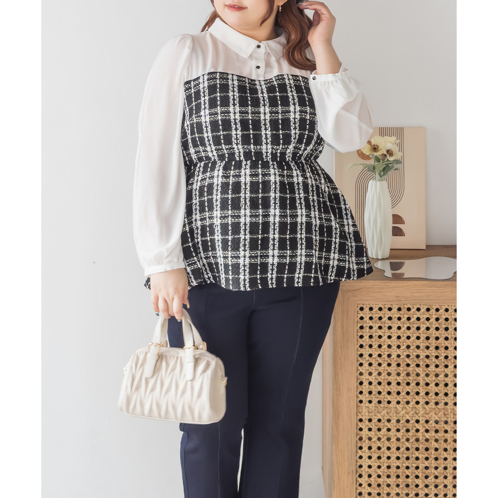 ツイードドッキングブラウス
