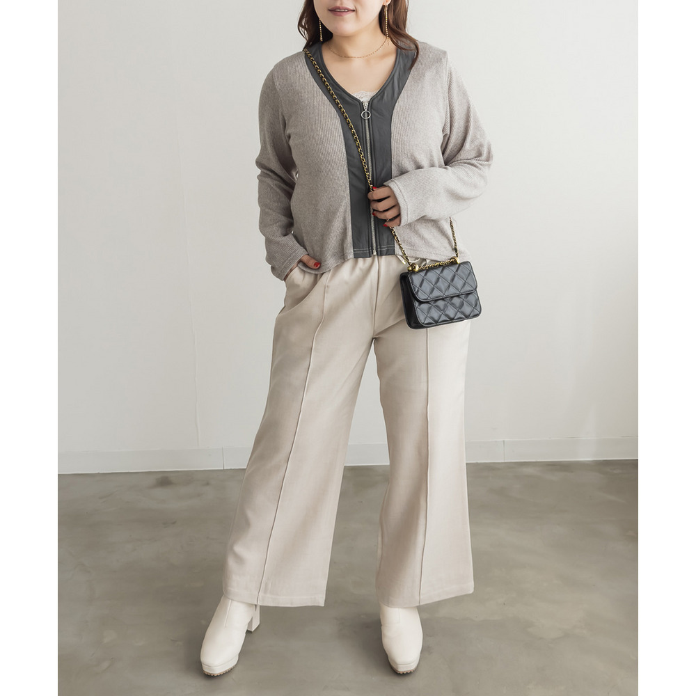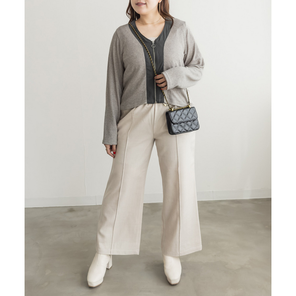 3Lサイズを着用して、ピッタリサイズでした。軽くて薄手のニットでやわらかく軽い着心地です!ほどよく短丈でスタイルアップして見えるのが嬉しい!フロントがジップになっていて視覚効果もあって華奢見えします!セットアップでも着用可能でコーデいらずでこなれ感のある着こなしになれます♪ |
