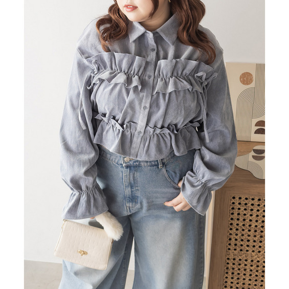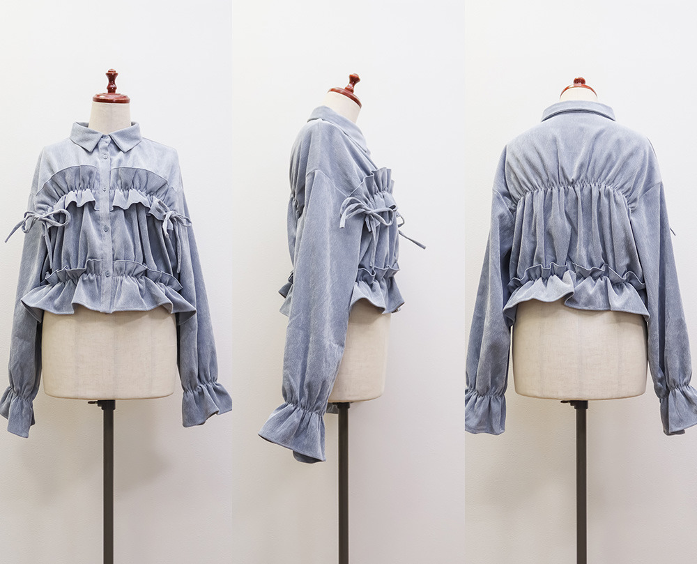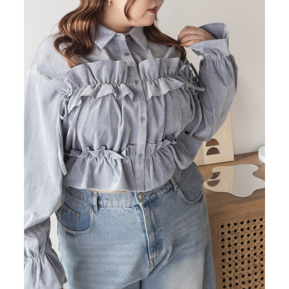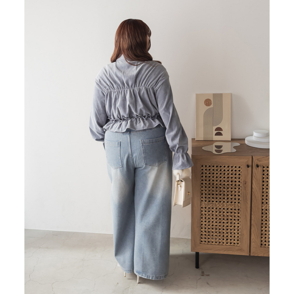3Lサイズを着用して、ちょうどいいサイズ感でした。ウエスト部分のギャザーが程よくフィットし、メリハリのあるシルエットに♪ ふんわりとしたキャンディースリーブとリボンデザインが華やかで、シンプルなボトムスと合わせるだけで存在感のあるコーデが完成します。丈感はやや短めなので、ハイウエストのパンツやスカートと相性◎ きちんと感がありながらも、程よい甘さのあるデザインなので、大人フェミニンなスタイルにぴったりな一枚です。