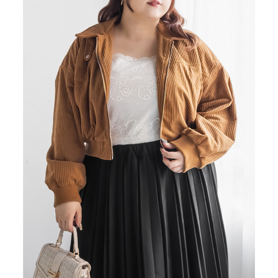 | 3Lサイズを着用してちょうどいいサイズでした。程よくゆとりのある着心地だったのでニットなどとも重ね着しやすいと思います◎コーデュロイ生地で季節感とトレンド感もあります!ショート丈でスタイルアップして見える1着で、ハイウエストボトムやワンピースとのコーディネートがおすすめです!しっかり温かみがあるジャケットで秋~春まで使えるので定番で持っておいても重宝します!どんなスタイルにも合わせやすく、系統問わずお使いいただけます♪ |