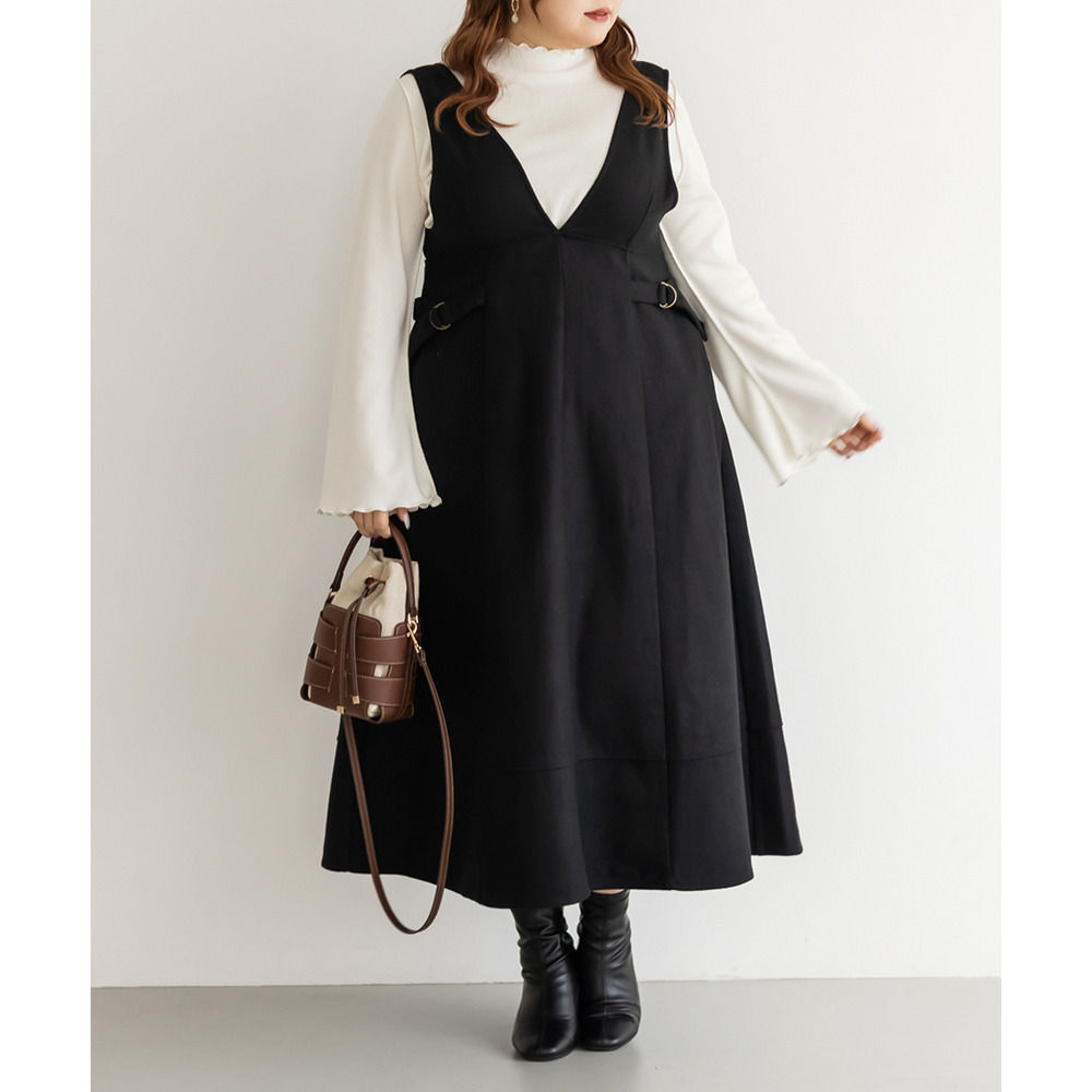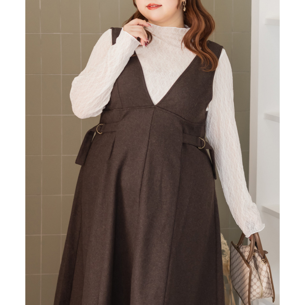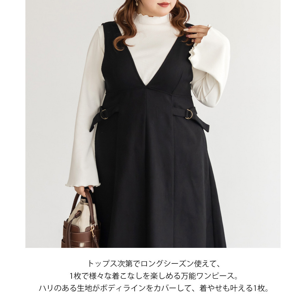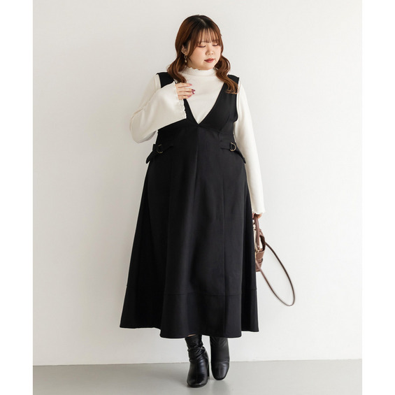 3Lサイズを着用しました!うしろウエストはゴム仕様で、サイドにベルトがあり少しだけならウエストを絞れる仕様でした!なので程よくフィットしながらもラクな着心地です◎ウエストから綺麗に広がるフレアシルエットなので、下半身のラインを自然にカバーしてくれて、すっきり見えします♪インナー次第でカジュアルにもガーリーにも着こなせるので、長いシーズンたっぷり着回せる1枚です。