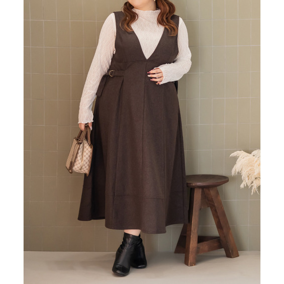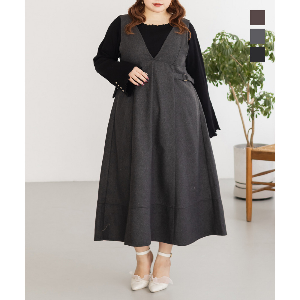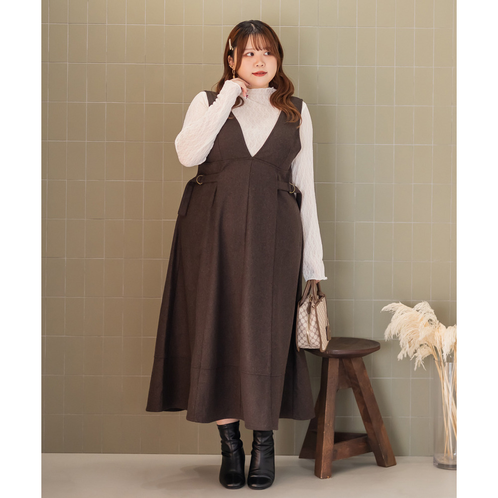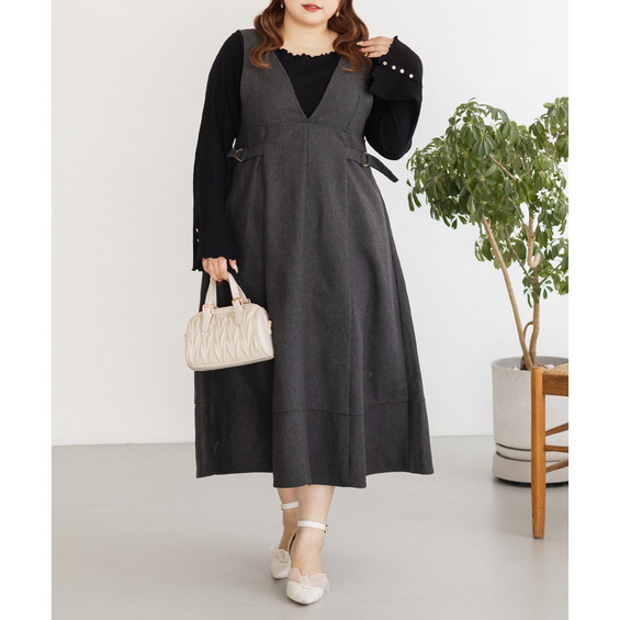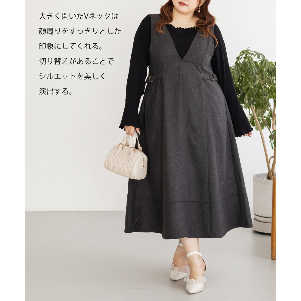3Lサイズを着用しました!うしろウエストはゴム仕様で、サイドにベルトがあり少しだけならウエストを絞れる仕様でした!なので程よくフィットしながらもラクな着心地です◎ウエストから綺麗に広がるフレアシルエットなので、下半身のラインを自然にカバーしてくれて、すっきり見えします♪インナー次第でカジュアルにもガーリーにも着こなせるので、長いシーズンたっぷり着回せる1枚です。