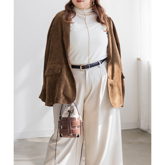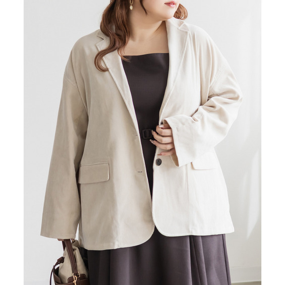 | 3Lサイズを着用して、ちょうどいい着心地でした。 お尻が隠れるくらいの丈感で、さっと羽織るだけでこなれた雰囲気に◎シーズンライクなコーデュロイ生地で季節の変わり目の羽織にピッタリです!カジュアルにもきれいめにも合わせやすいのが嬉しいポイント♪ デニムと合わせてラフに着こなすのはもちろん、スラックスやスカートと合わせてオフィスカジュアルにもぴったりな万能ジャケットです◎ |