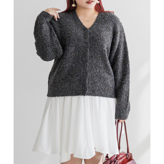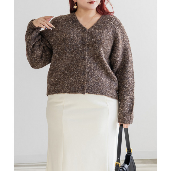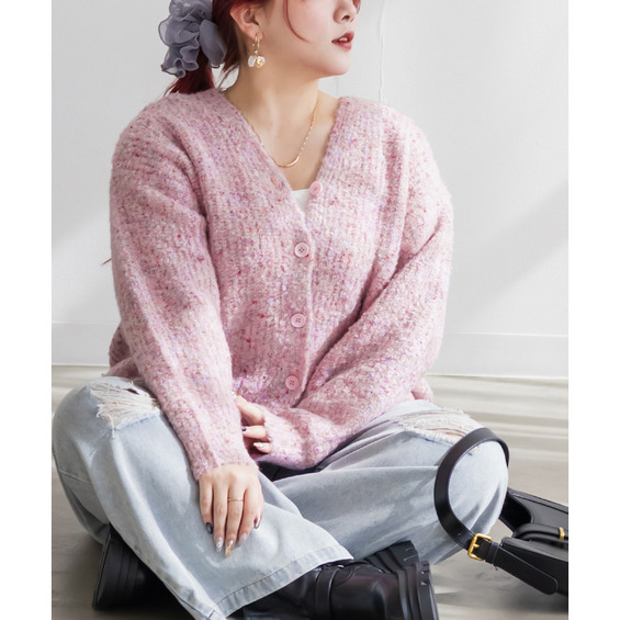| 3Lを着て程よいサイズで着ることが出来ました。ふわふわのニットで着心地も楽なカーディガンです!程よくゆとりのあるサイズ感で、カーデとしてもプルオーバーとしても使える便利な1枚です!Vネックで襟がすっきりと開いているから、シアーやタートルネックのインナーをレイヤードしても可愛いです!綺麗め・カジュアル・可愛い系どんなスタイルにも合わせやすい秋冬大活躍できる1枚です! |
