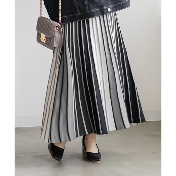 | 3Lサイズを着用して程よくゆとりのあるサイズ感でした。いつも通りのサイズ選びで問題なさそうです。伸縮性の良いニットなので動きやすく着用もらくらくでした!素材はニットですが、サラッとした肌触りで着心地もノンストレスに着用できました。立体感のあるプリーツのような配色切替が高見えデザインなのが上品さを引き出してくれます!ストライプの縦ラインが下半身をほっそり見せてくれる効果もあります!裾に向かってほどよく広がる美しいシルエットが上品でかわいいです♪ |