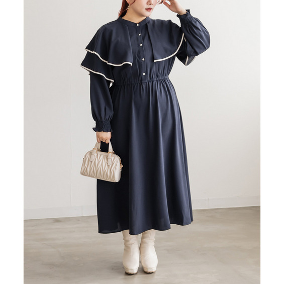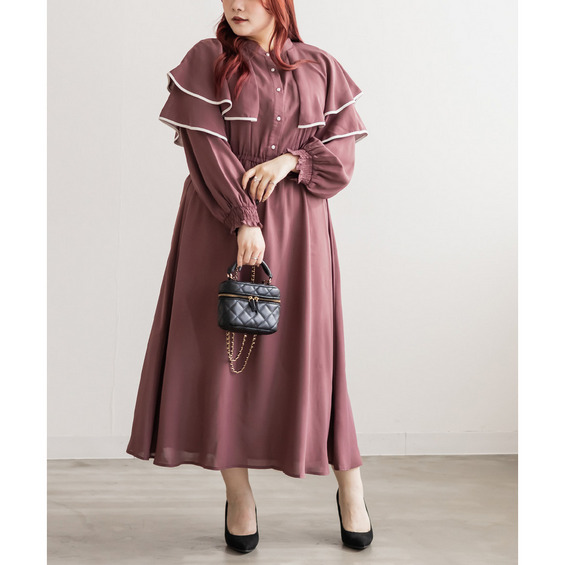 | 3Lサイズを着用してちょうどいいサイズ感でした◎ウエストもやわらかいゴム入りだったのでストレスなく着用出来ました!メリハリのある配色テープのデザインでがお出かけやデートにピッタリです♪フリルが見頃をコンパクトに魅せてくれて、フェミニンさと着痩せを両立した1枚です。アウターを着てもごわつかない軽い生地感でした。秋~春と長いシーズン着れそうなワンピです! |
