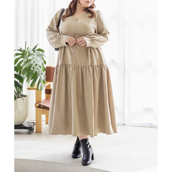 | 3Lサイズを着てちょうどよジャストいフィットでした!軽く程よくハリ感のある生地で、伸びは無くゴムのないすっきりデザインなので心配な方はサイズ確認をお勧めします。ウエストにタックが入っていてキュッとくびれたフィット&フレアシルエットになって女性らしく着られます。ブーツやスニーカー、小物使いを変えるだけで違った印象に変化できます。フロントジップなのでメリハリが付いて、すっきりとした印象です。シンプルながら季節感もあってデザインなので、お出かけやデートにもおすすめです! |