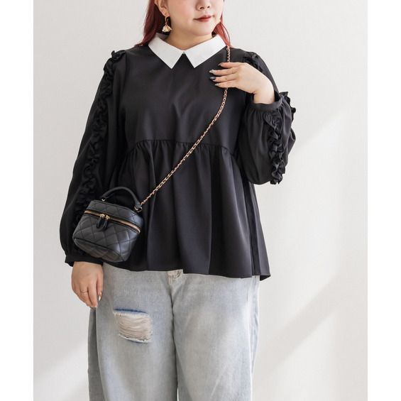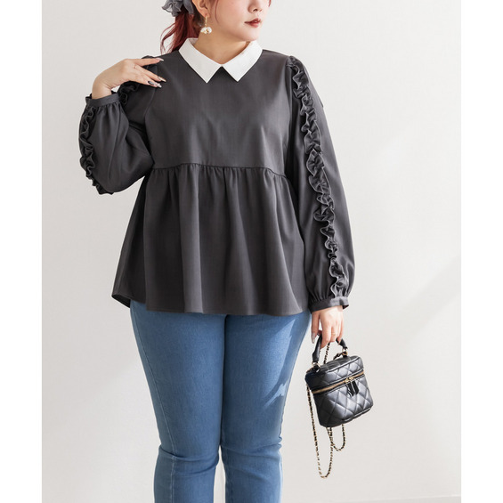 | 3Lを着てちょうどいい着心地でした!窮屈感の無い程よいゆとりがありました。。さらっとした生地で着心地も軽く、季節の変わり目にもぴったりでした◎ 衿のデザイン配色になっていて、1枚で着ても華やかに決まるブラウスです♪ 衿は取り外しができるので、シンプルめに着たい時などシーンに合わせて雰囲気を変えられます!ウエストから広がるペプラムシルエットですっきり見えするのも嬉しいポイント!袖のフリルがさりげなく二の腕をカバーしてくれて、女性らしい印象にきれいめにもカジュアルにも合わせやすいです。 |