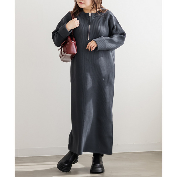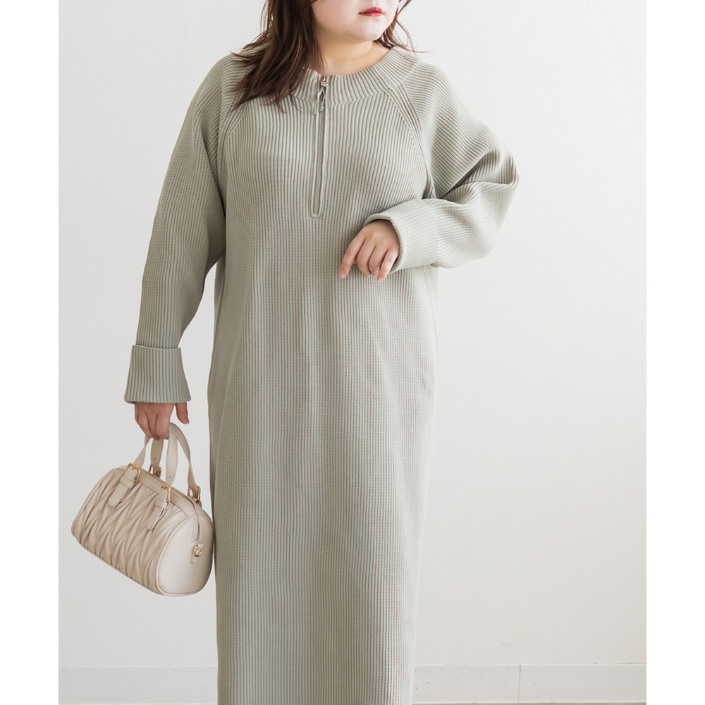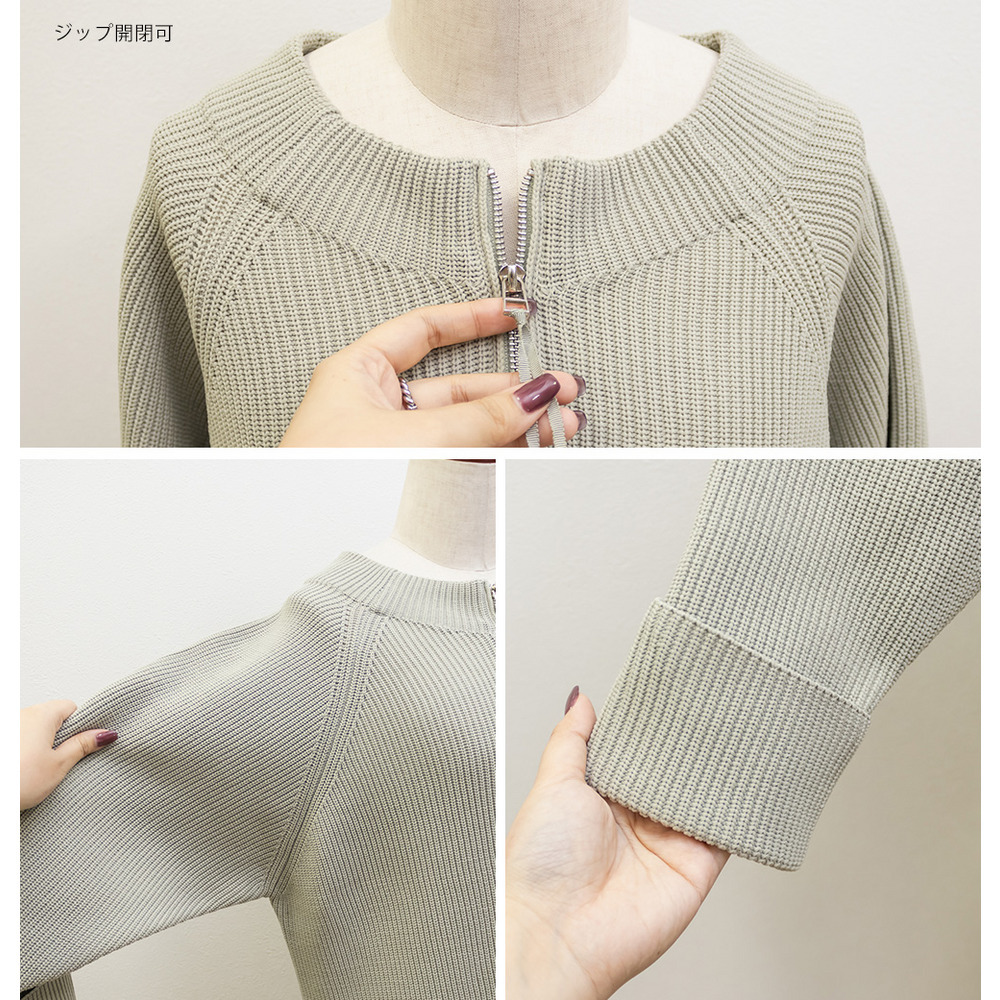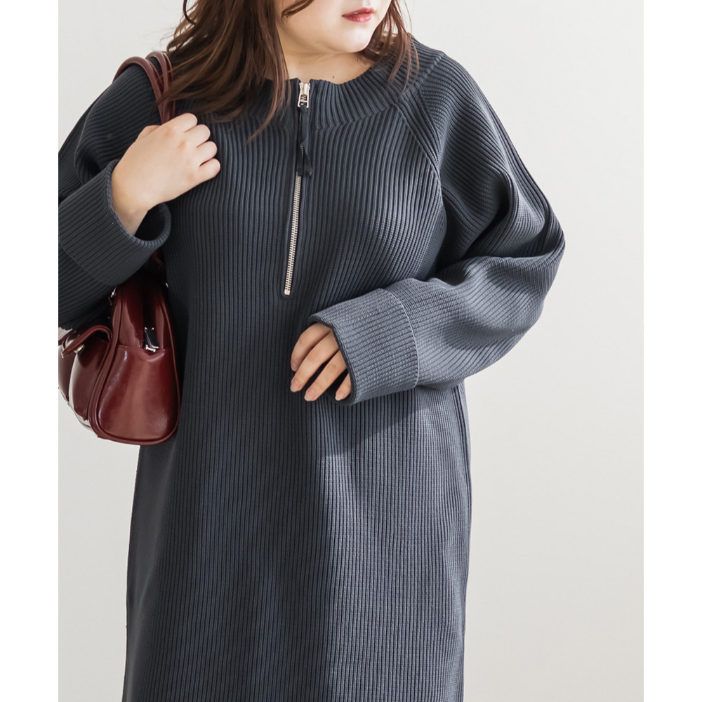 | 3Lサイズを着用して程よいサイズ感でした。すっきりシルエットなのでサイズ確認をお勧めします!軽いスポンジニットで動きやすくノンストレスに着用できました。ネック周りも窮屈感が無かったです!ジップデザインが顔回りにメリハリをプラスしてくれます◎着丈も長すぎず、身長の高い方はパンツをレイヤードしても可愛いと思います♪ |