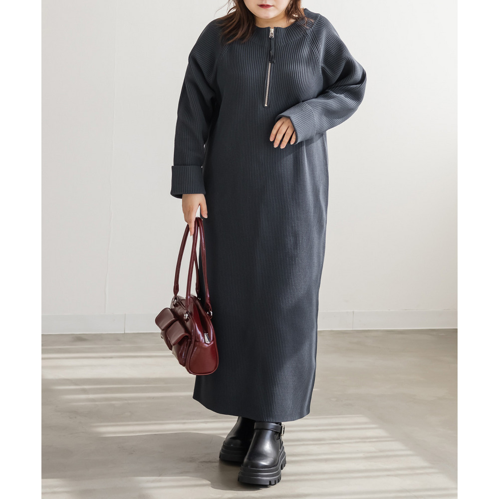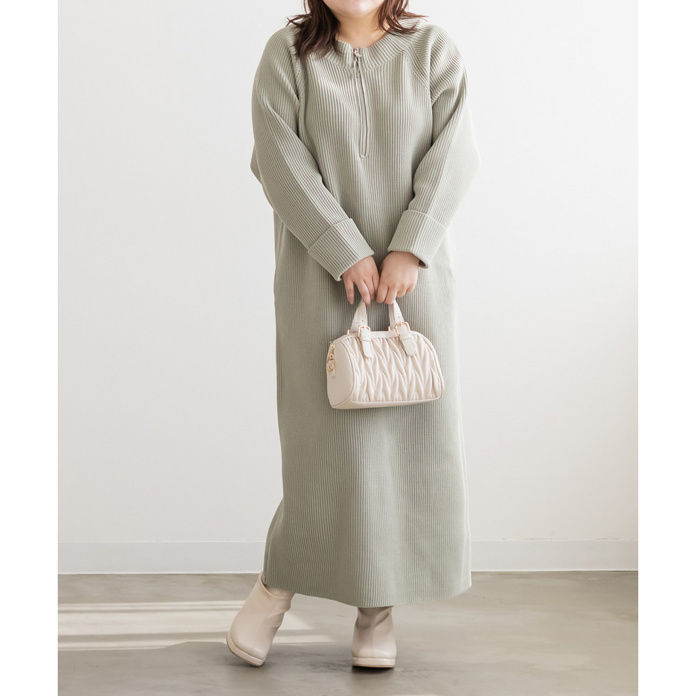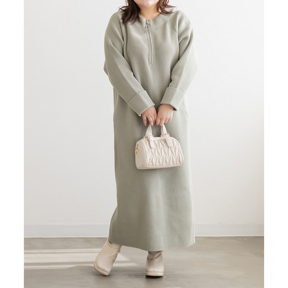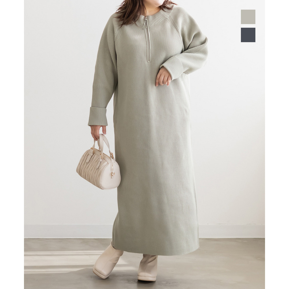 | 3Lサイズを着用して程よいサイズ感でした。すっきりシルエットなのでサイズ確認をお勧めします!軽いスポンジニットで動きやすくノンストレスに着用できました。ネック周りも窮屈感が無かったです!ジップデザインが顔回りにメリハリをプラスしてくれます◎着丈も長すぎず、身長の高い方はパンツをレイヤードしても可愛いと思います♪ |