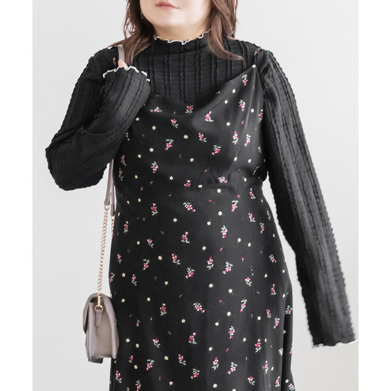 3Lを着てゆとりがありました。ぽこぽこ感のある生地が伸縮性もあってラクチンな着心地です◎配色メローデザインで甘く・子供っぽくならずにおしゃれな雰囲気で着られてメリハリのある印象です。プチハイになっているのも大人っぽくて可愛いです!ボディラインも拾いづらい生地感なのでトップスとしても着用できます。レイヤードのインナーとしても使い勝手がいいからあると便利なプルオーバーです♪