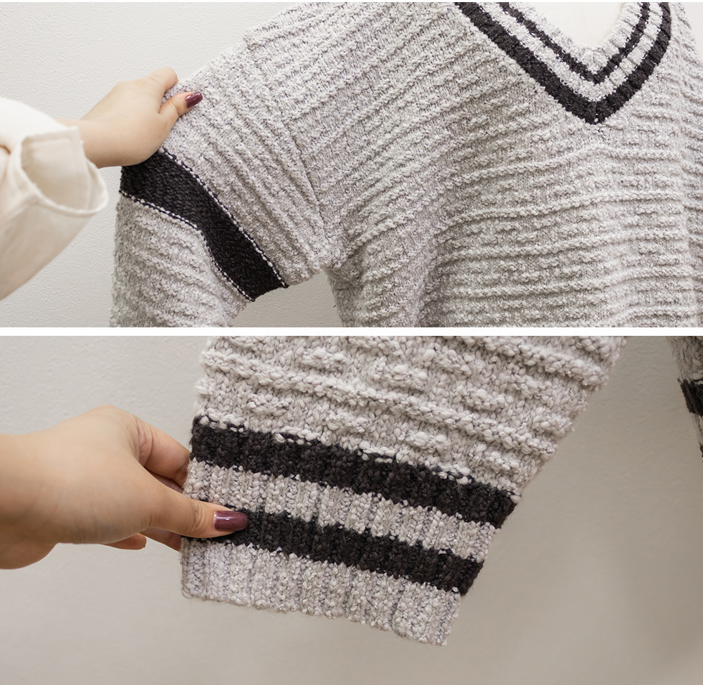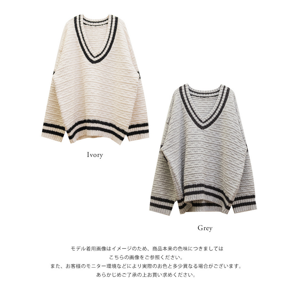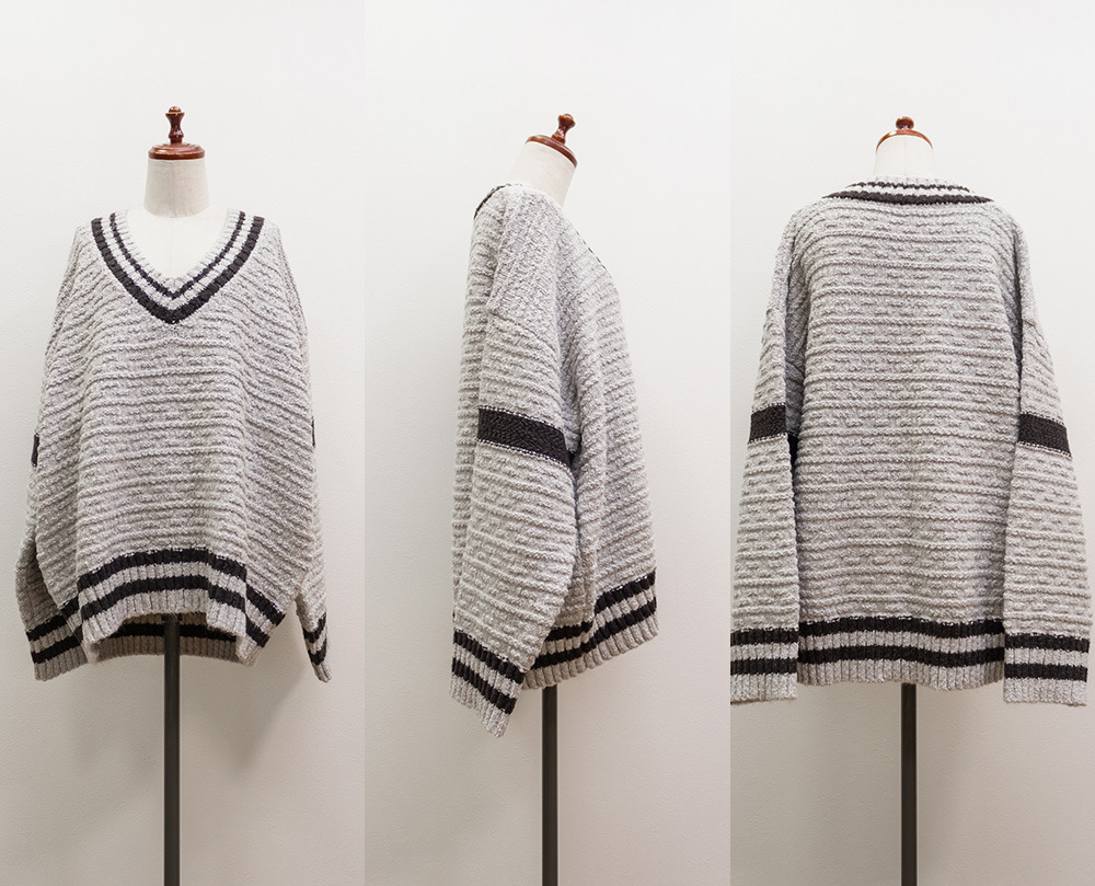 ライン入りVネックニット