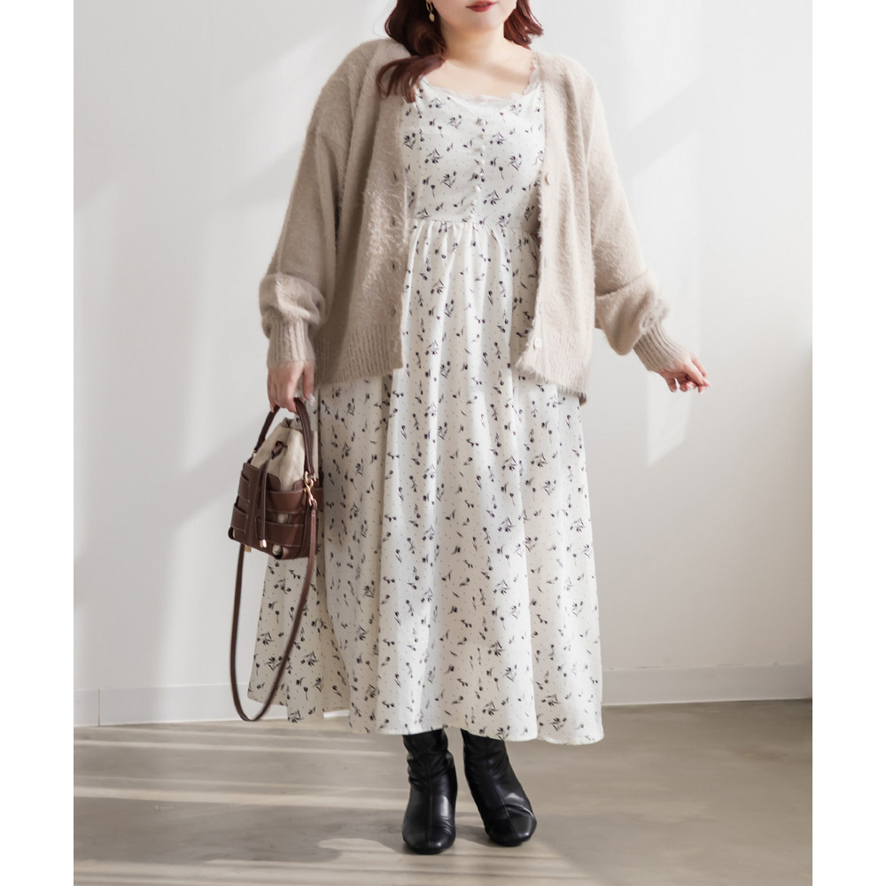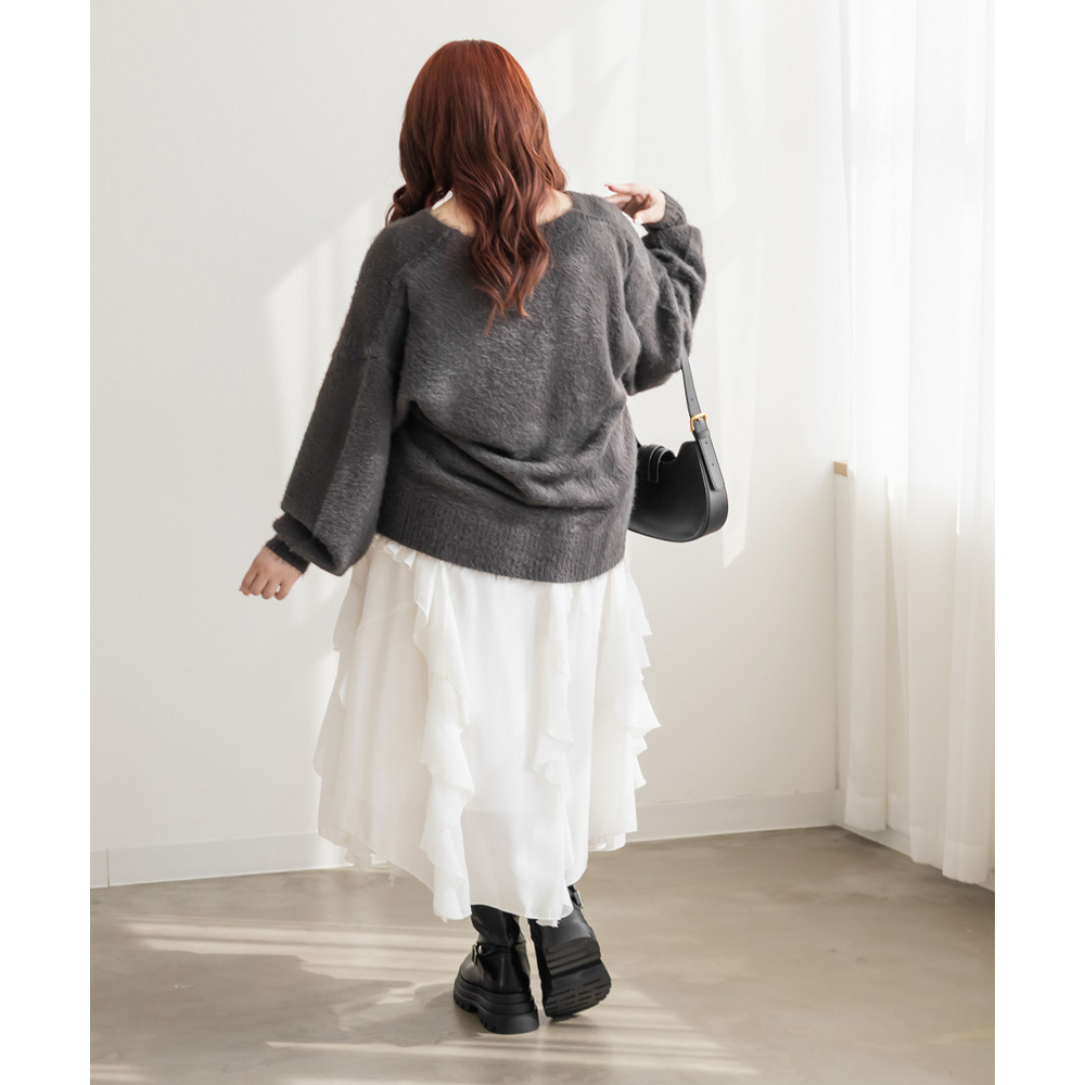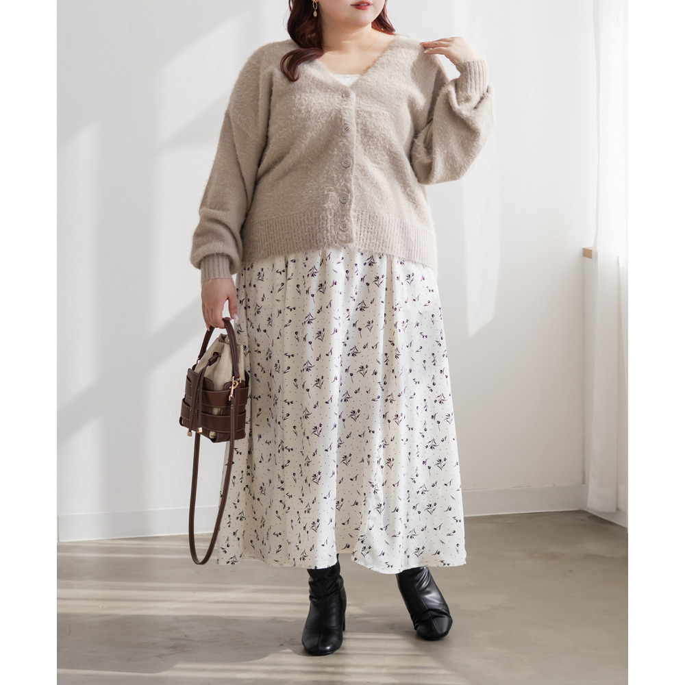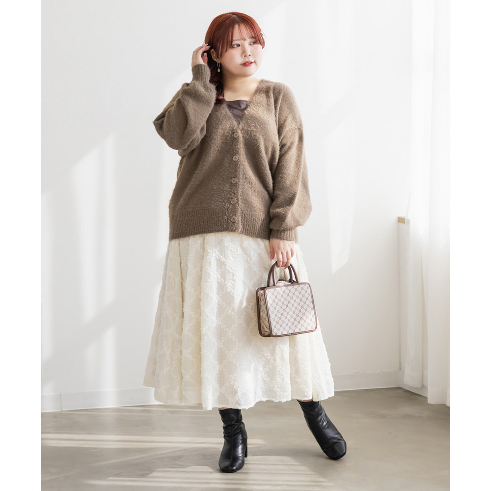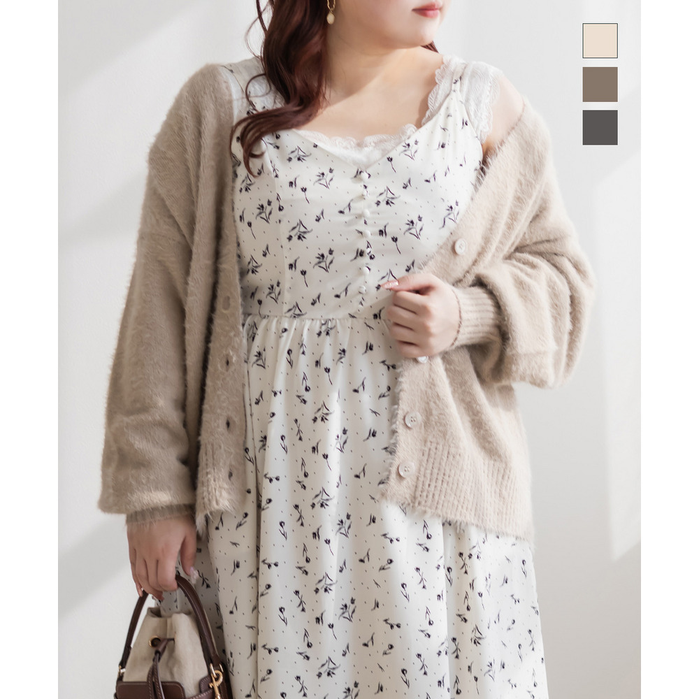 3Lを着てちょうどいいサイズで着ることが出来ました。シャギーがふわふわで着心地も気持ちの良いカーディガンです◎程よくゆとりのあるサイズ感だで、お尻周りを隠してくれる着丈で、カーデとしてもプルオーバーとしても使える便利な1枚です!Vネックで首元がすっきりと開いているから、シアーやタートルネックのインナーをレイヤードしても可愛いです!綺麗め・カジュアル・可愛い系どんなスタイルにも合わせやすい秋冬春と大活躍できる1枚です!