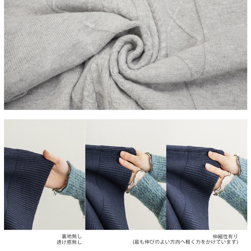 | 素材 | ■素材 ポリエステル94%、ウール6% ■裏地・透け感・伸縮性 裏地無し、透け感無し、伸縮性有り ■ポケット 無し ■生地感 もちっとした柔らかい素材のニットです。 |