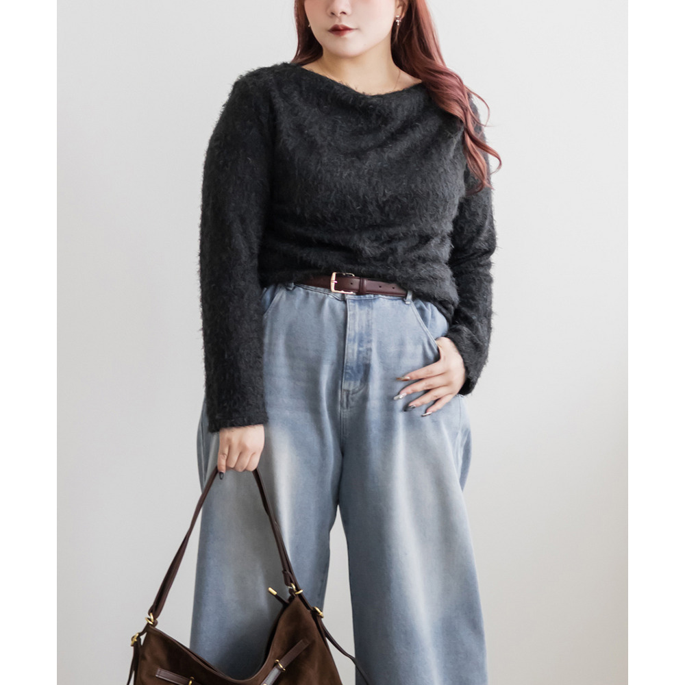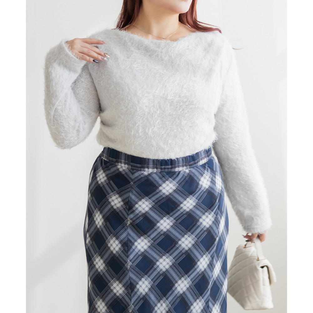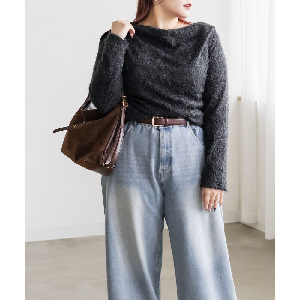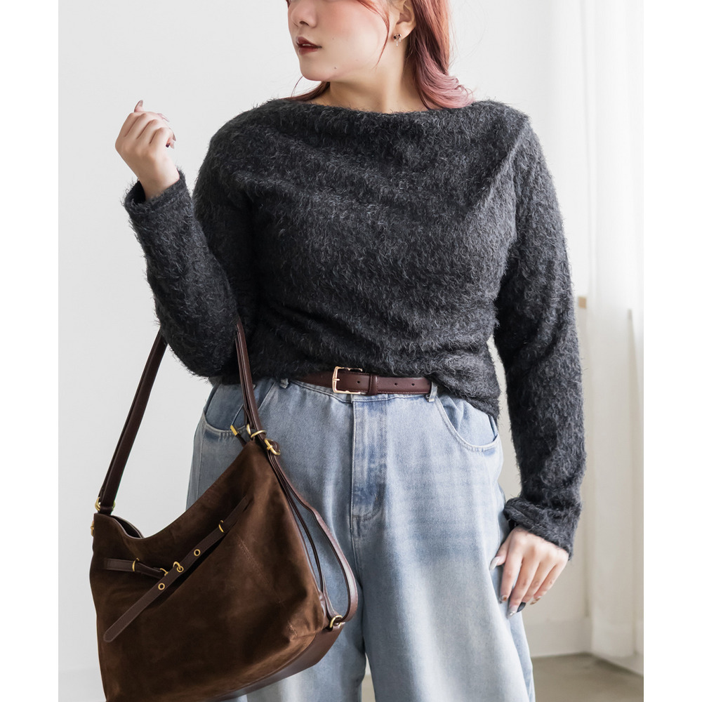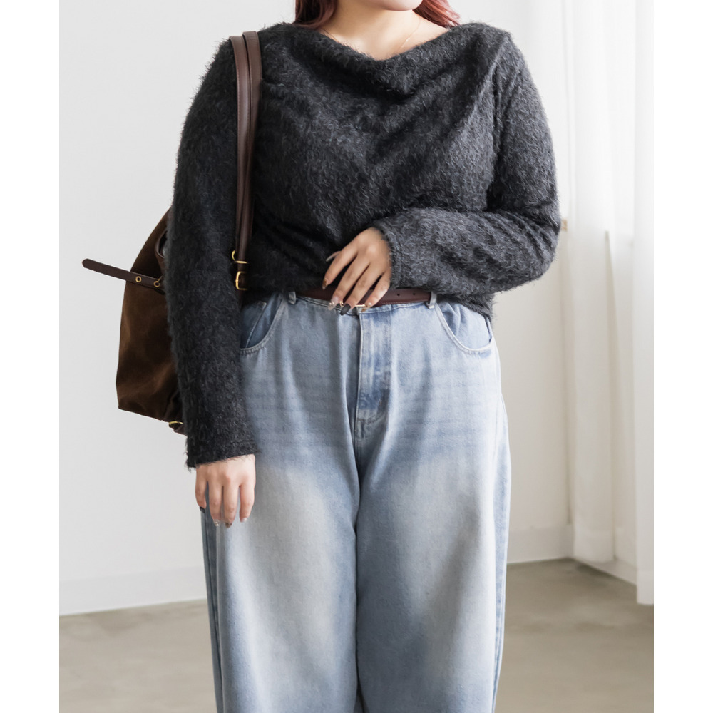 | 3Lサイズを着用して、ちょうどいいサイズ感でした。ふわふわのシャギー生地なのでボディラインを拾いづらく、華奢見せ&女性らしさをプラスする印象でした!顔周りをスッキリ見せるドレープがシンプルながら女性らしいデザインで、こなれ感プラスして1枚で大人っぽい洗練された雰囲気になれます♪薄手の生地感なので、季節感がありつつアウターを重ねやすいのも嬉しいです!伸縮性の良い素材感とシンプルなカラー展開で、合わせるボトムを選ばないのもうれしいポイントです!トレンド感あるトップスなので1枚持っておきたいです! |