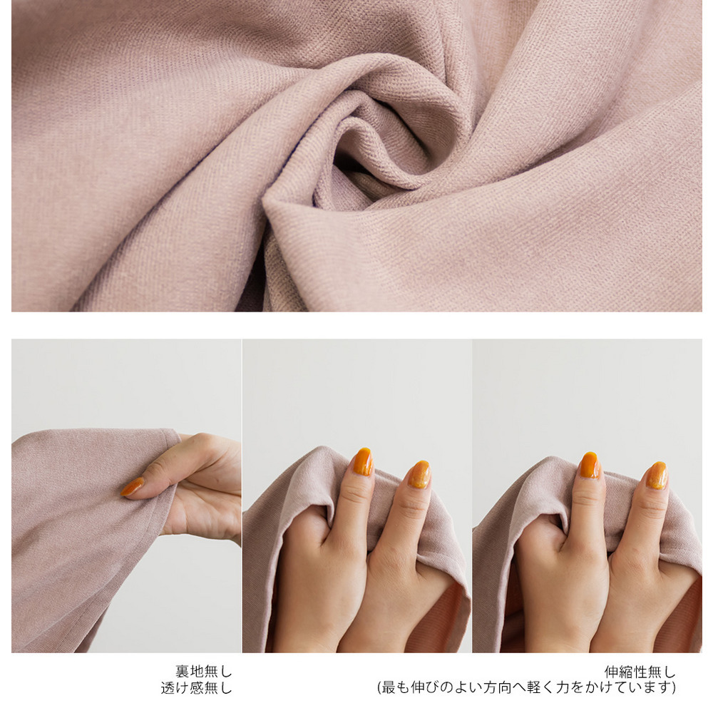 | 素材 | ■素材 ポリエステル95%、ナイロン5% ■裏地・透け感・伸縮性 裏地無し、透け感無し、伸縮性無し ■ポケット 無し ■生地感 程よくハリ感のあるさらっとした素材です。 |