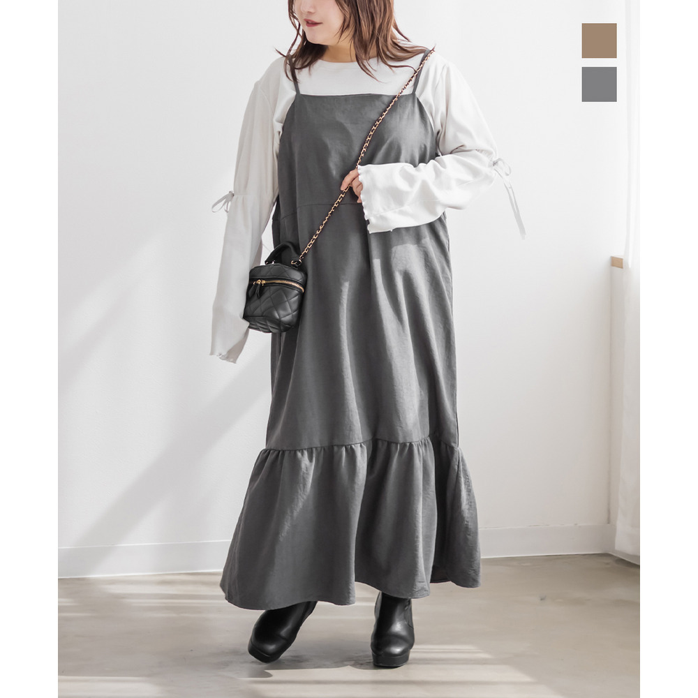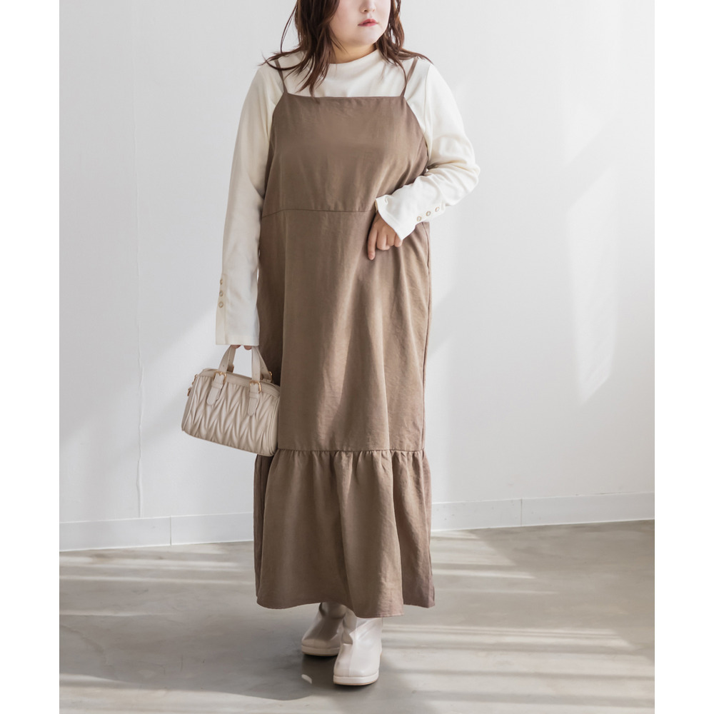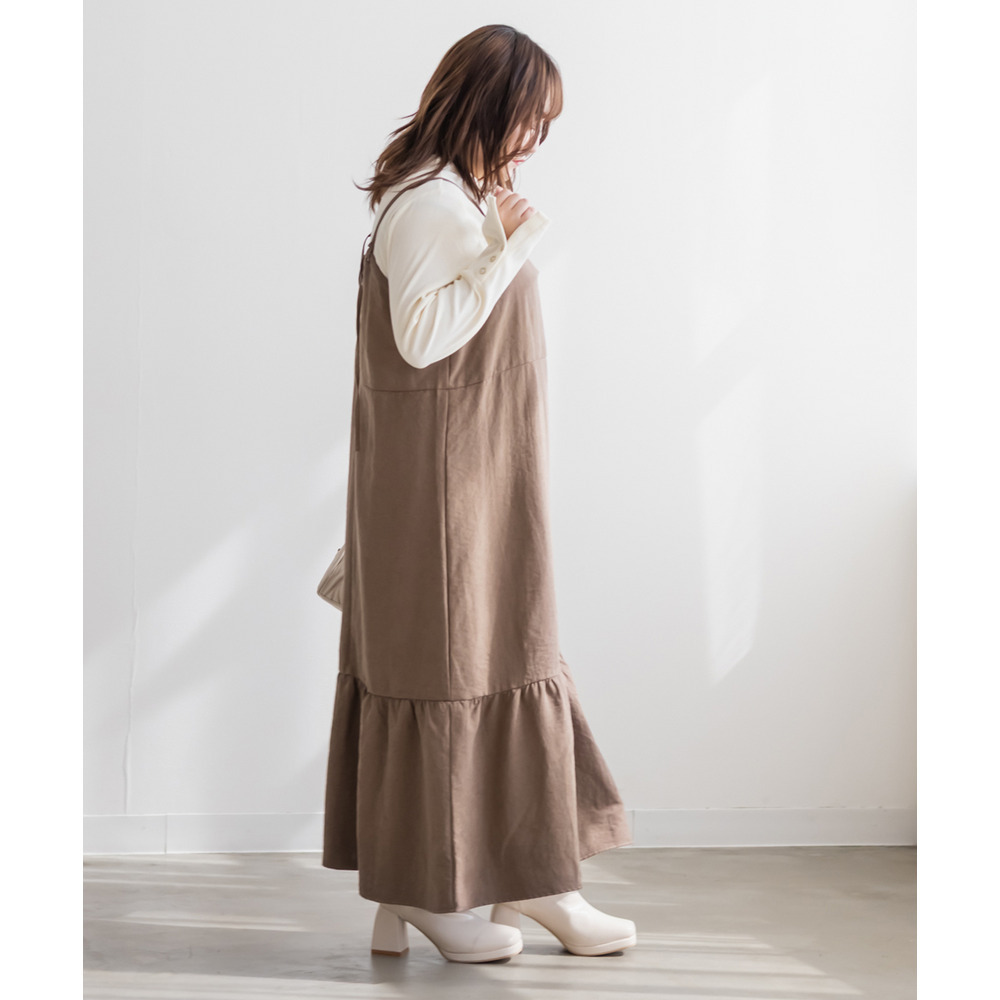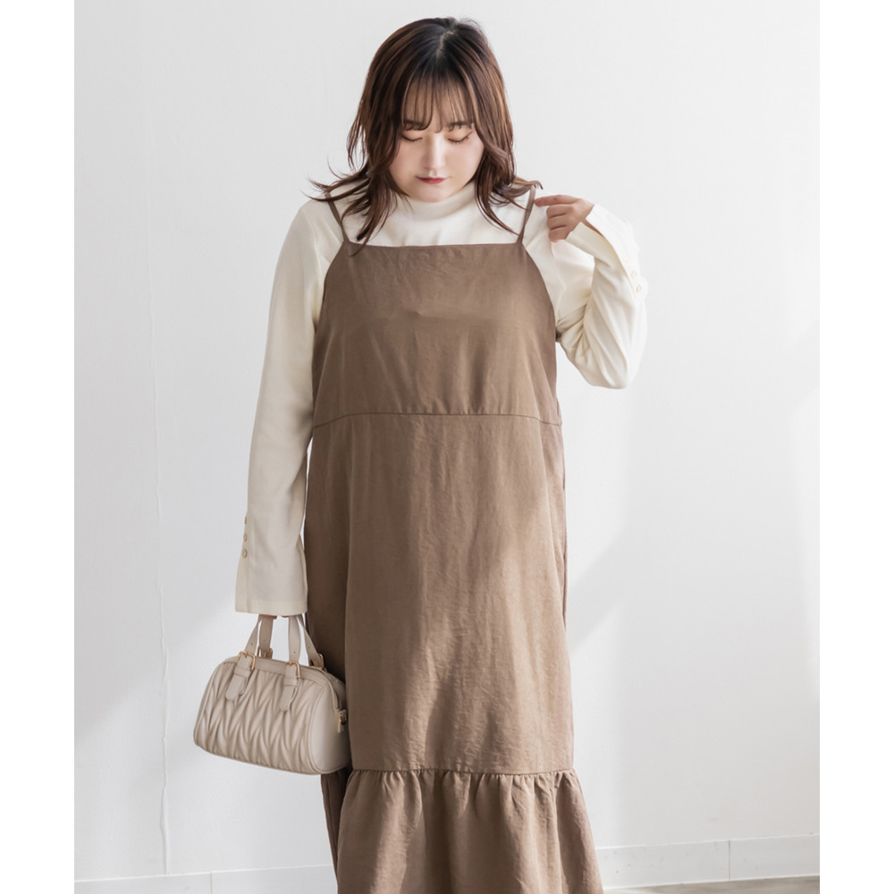 裾フレアスエードキャミワンピース