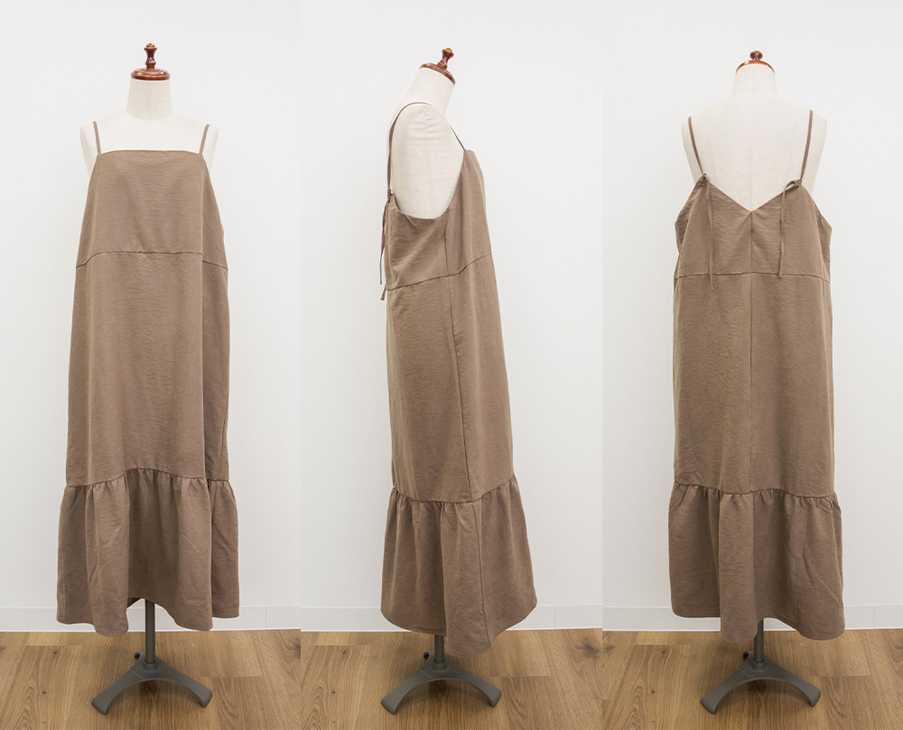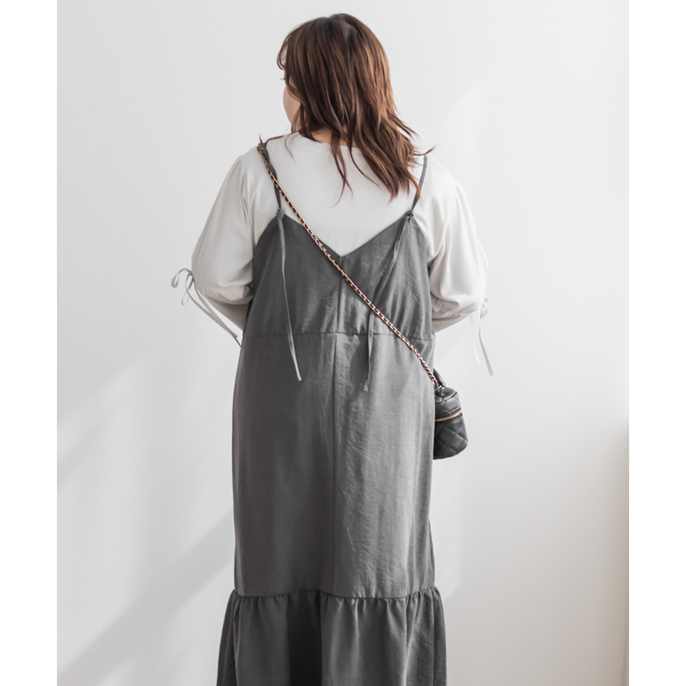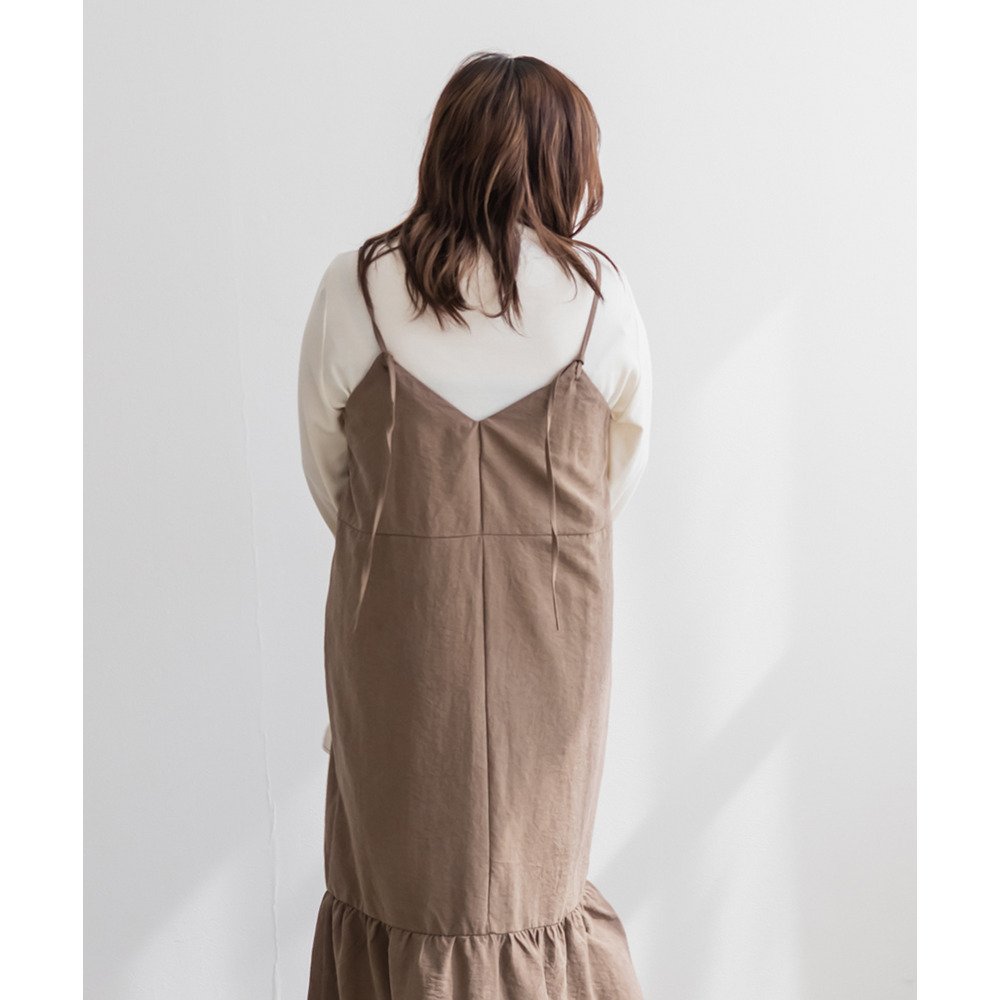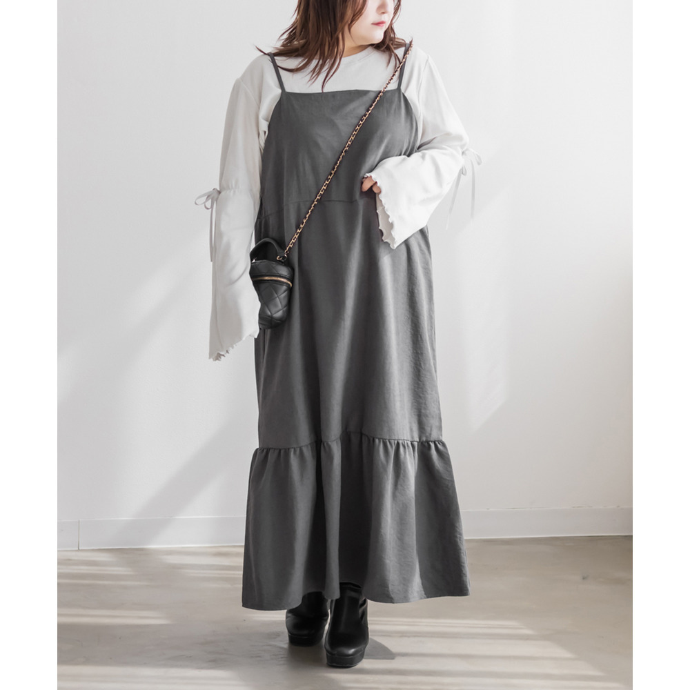 裾フレアスエードキャミワンピース