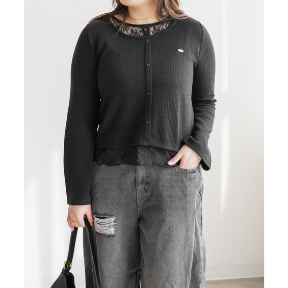 | 3Lサイズを着用して丁度良い着心地でした!軽く伸縮性のあるカットソー生地なので窮屈感なくノンストレスでした。レースを重ねたドッキングデザインが簡単にスタイリングを完成させてくれる優秀トップスです。 着丈はちょうどよく裾出しで着て可愛い1枚です♪1枚で着るだけで今っぽくなれて、シンプルなスカートやパンツと合わせて大人カジュアルに着こなせます! |