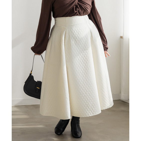 3Lサイズを着てみて丁度いいサイズでした!普段ヒップが気になる私ですが、裾に向かって綺麗に広がるシルエットのおかげでスタイルアップして見えました◎ハイウエストでキュっとなっているデザインだからサイズ感が心配な方は確認をお勧めします!上品で大人っぽいデザインで、キルティングだけど中に綿が詰まってるわけではく重くありませんでした。キルティングのおかげで程よいハリがあるから、お腹周りや腰回りなどの体のラインも拾わずに綺麗なシルエットで保たれます♪秋冬のコーデで大活躍しそうなスカートです!