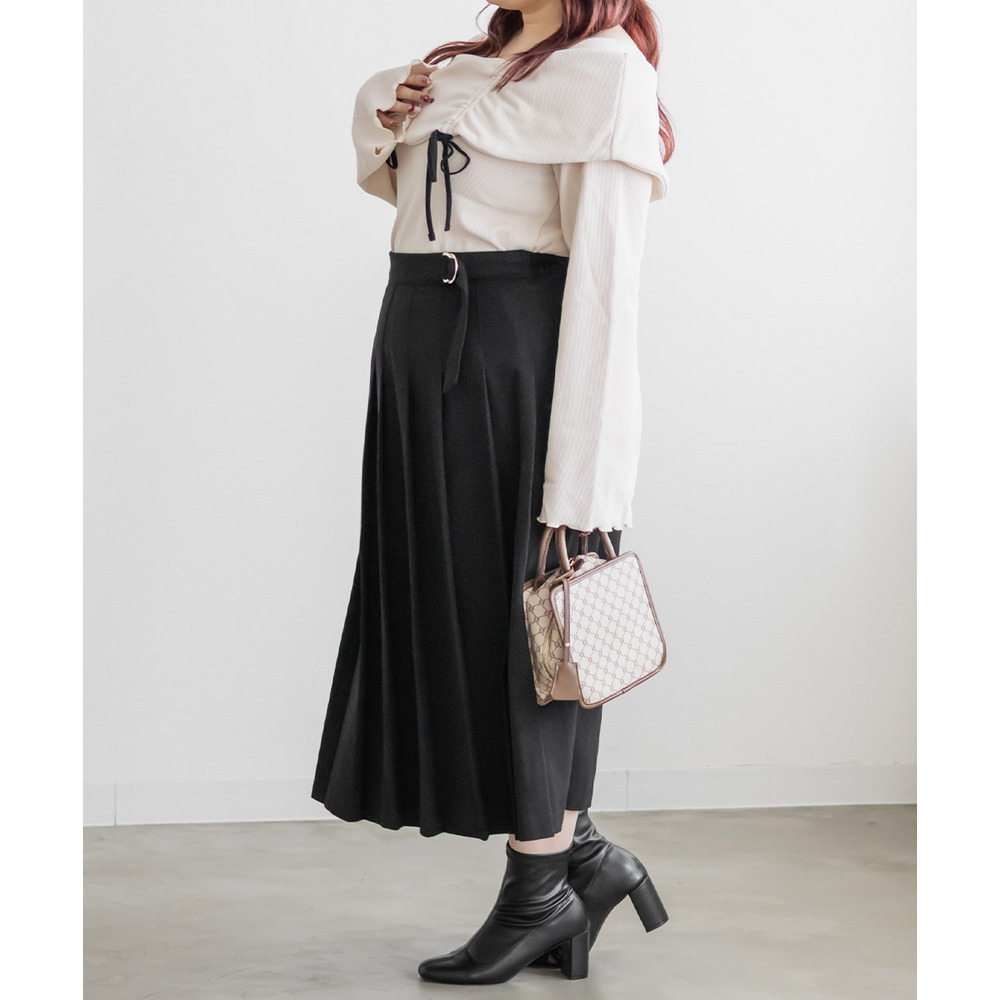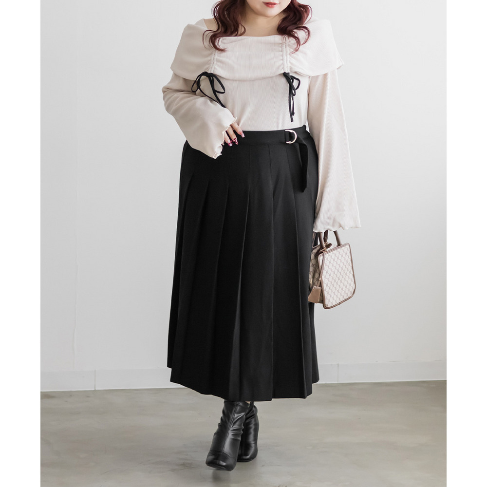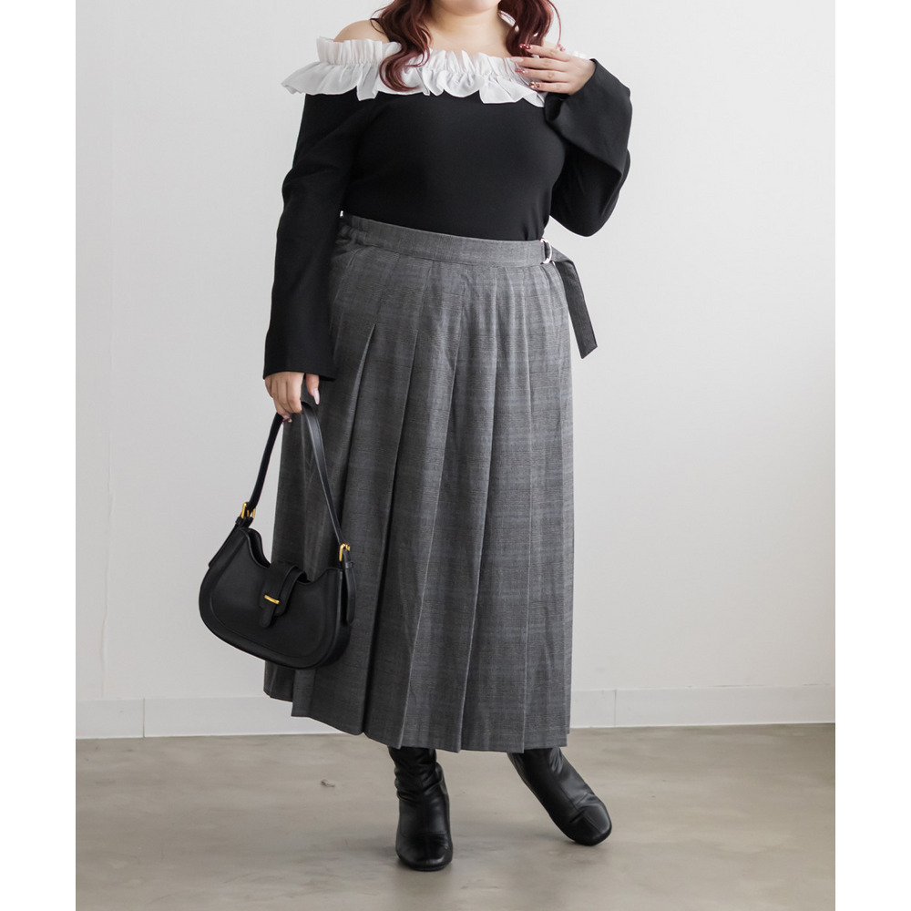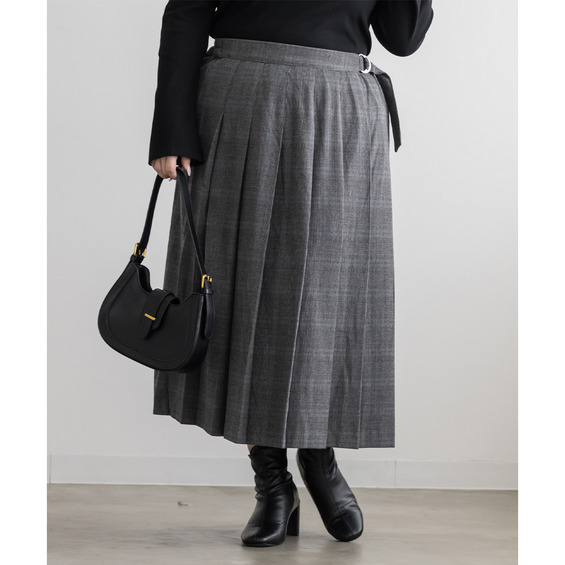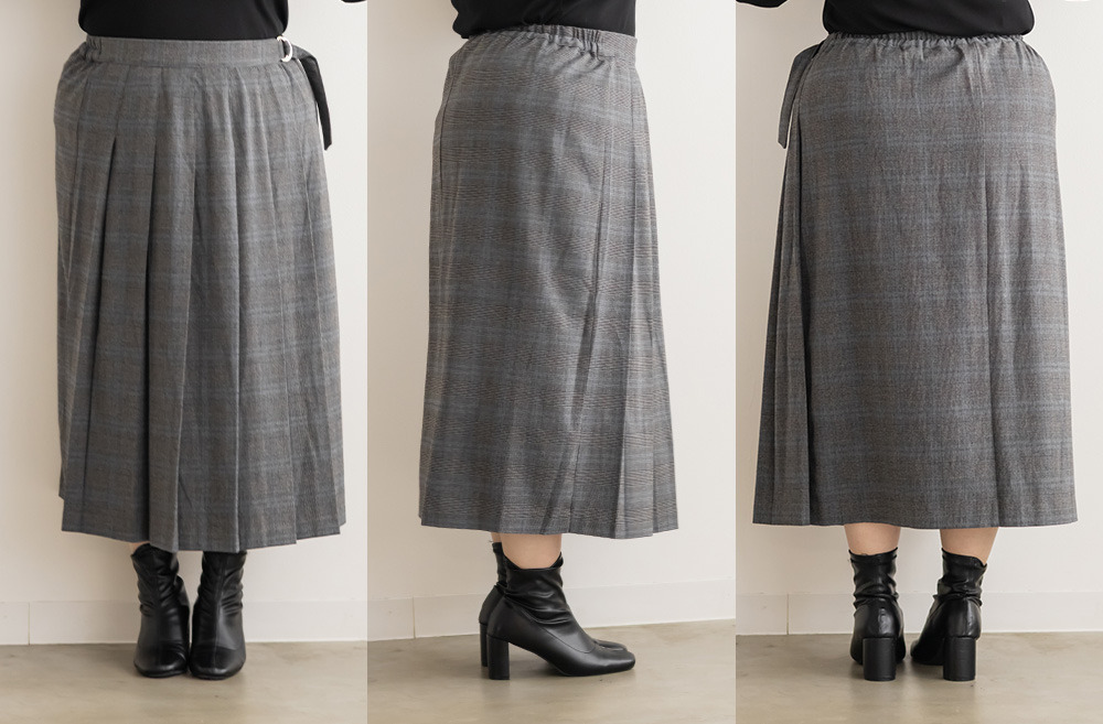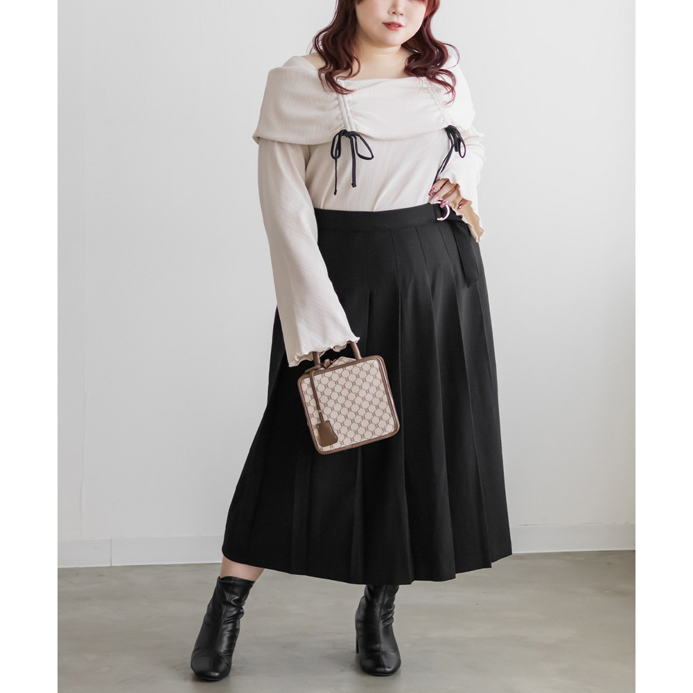 | 3Lサイズを着用しました。後ろはゴムで窮屈感無く、ちょうどいいサイズ感でした!プリーツの落ち感がきれいで上品見えします。後ろはプリーツ加工されていないので、座ったりしても崩れず安心です!長すぎない着丈で低身長さんにもおすすめです◎フレアシルエットで腰回りや太もも周りをしっかりカバーしてくれて、ブーツ合わせはもちろん、フラットシューズでもヒールでもバランスよく合わせられそうです!きれいめにもカジュアルにも使えて、オンオフ問わず活躍してくれるスカートです! |