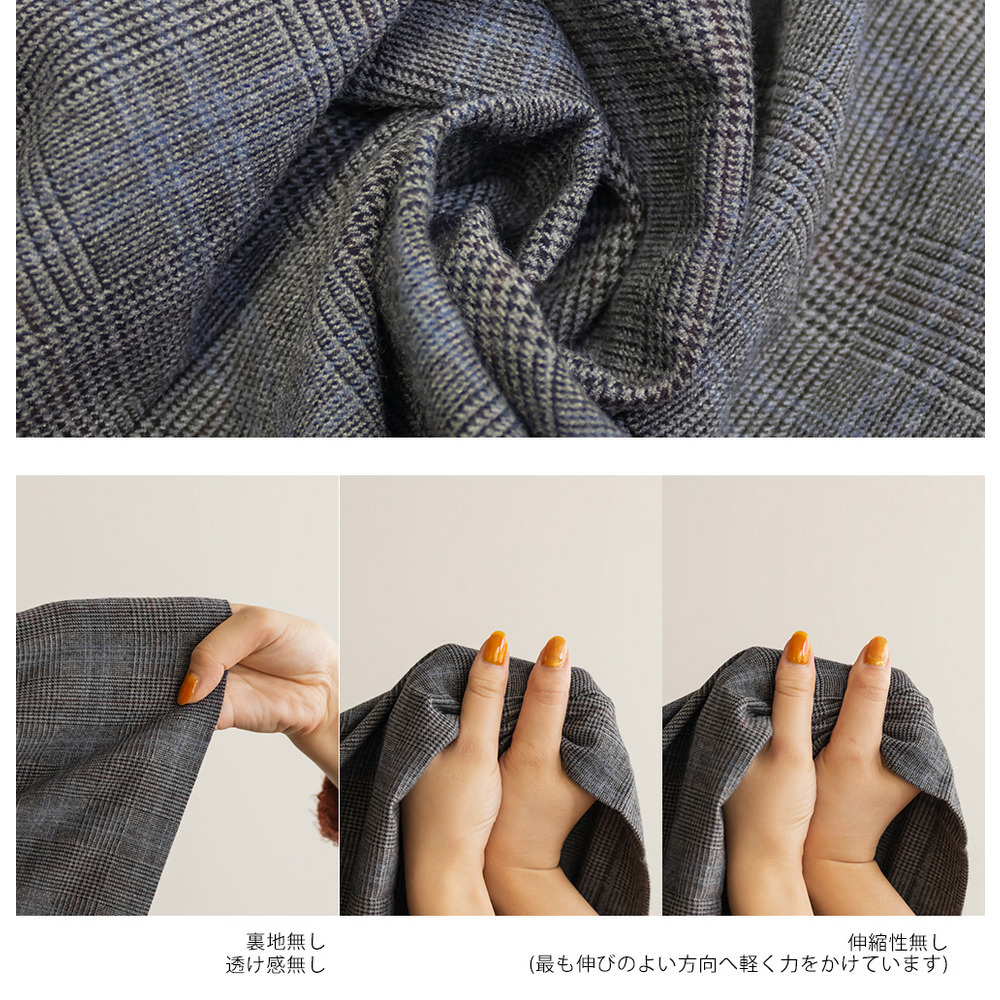 | 素材 | ■素材 ポリエステル80%、レーヨン15%、ポリウレタン5% ■裏地・透け感・伸縮性 裏地無し、透け感無し、伸縮性少し有り ■ポケット 無し ■生地感 やや起毛感のある柔らかな素材です。 |