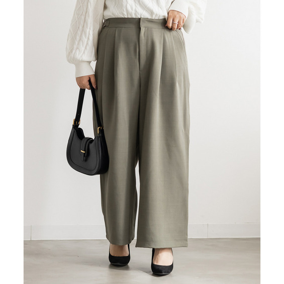 | 3Lサイズを着用してちょうどいいサイズ感でした。いつも通りのサイズ選びで問題なさそうです。ゆとりがありつつすっきり見えるシルエットで、楽ちんな着心地です!どんなトップスとも相性良く着られて、コーデに困らないのが嬉しいです◎ウエスト部分にベルトが付いたデザインで、短丈のアイテムと合わせたときにポイントになります!普段使いはもちろん、お仕事にもおすすめでオールシーズン使える便利な1枚です! |