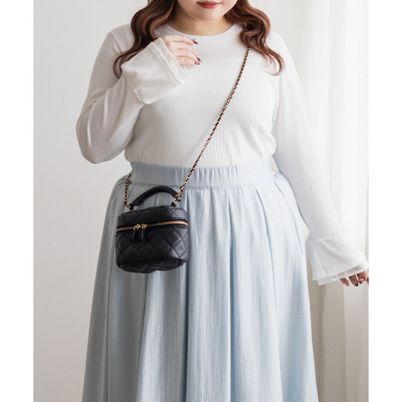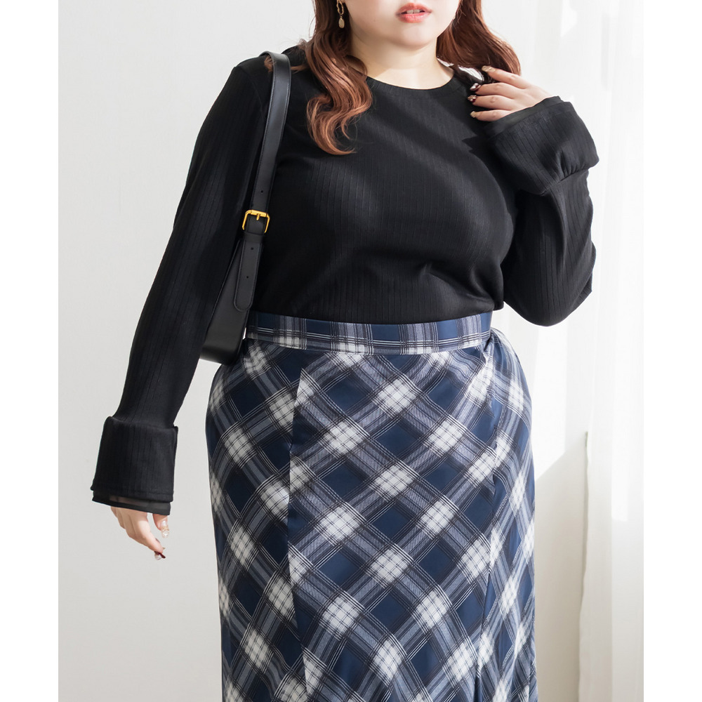 | 3Lサイズを着用して丁度いい着心地でした!伸縮性の良いカットソー着心地ラクチンでした!首元はシンプルなクルーネックでどんなシーンにも使いやすいです!袖元だけシフォンが重なっていてさりげなく可愛いです◎トップスとして1枚で着てもいいし、キャミワンピ・ジャケットなどなど重ねてもいいと思います!着回ししやすい1枚なのであると便利です。 |