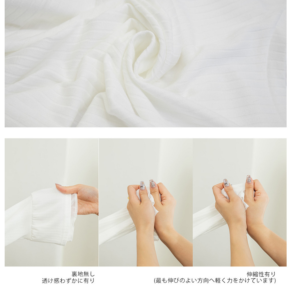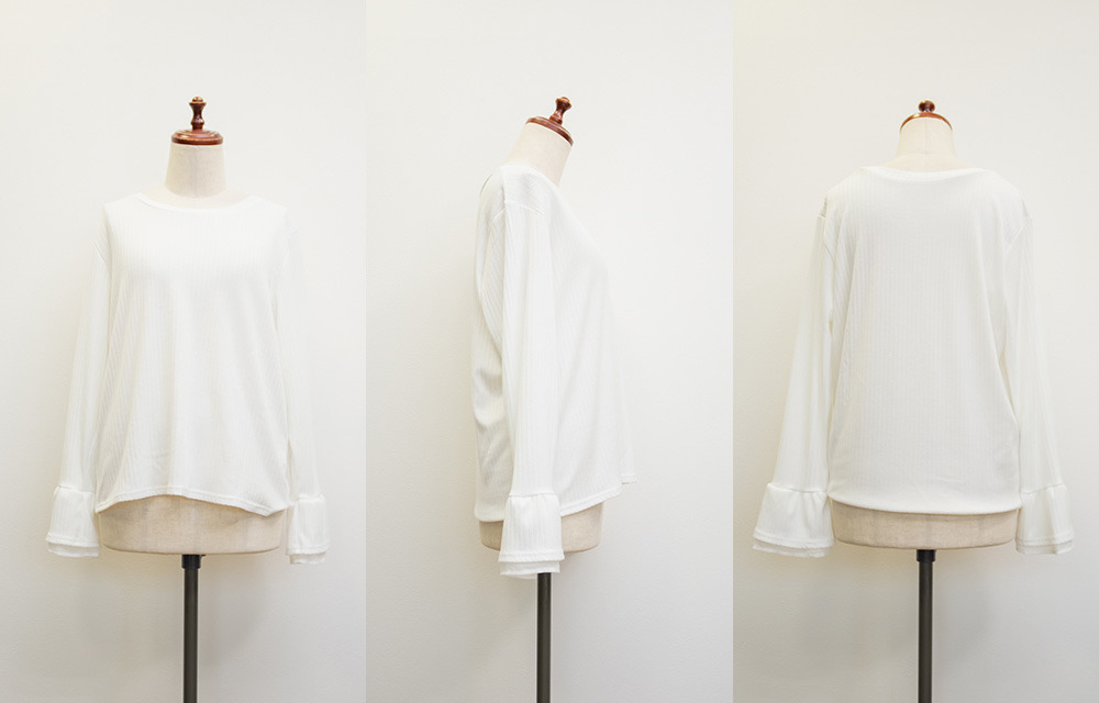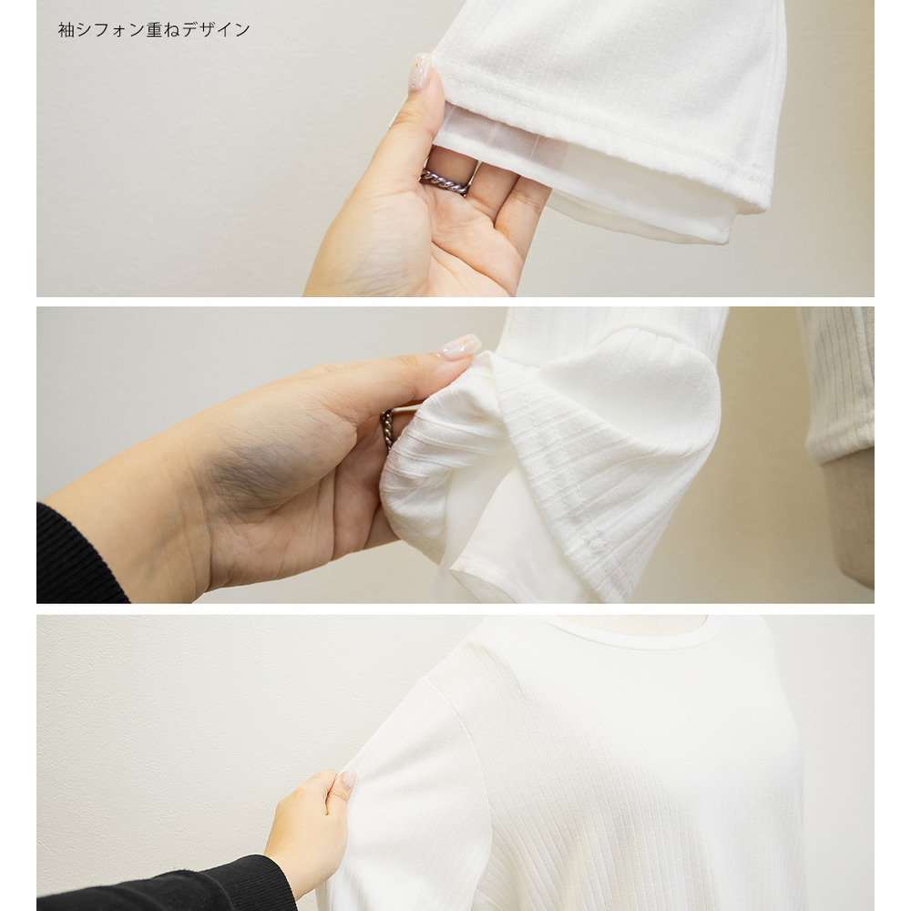 袖シフォン重ねリブプルオーバー