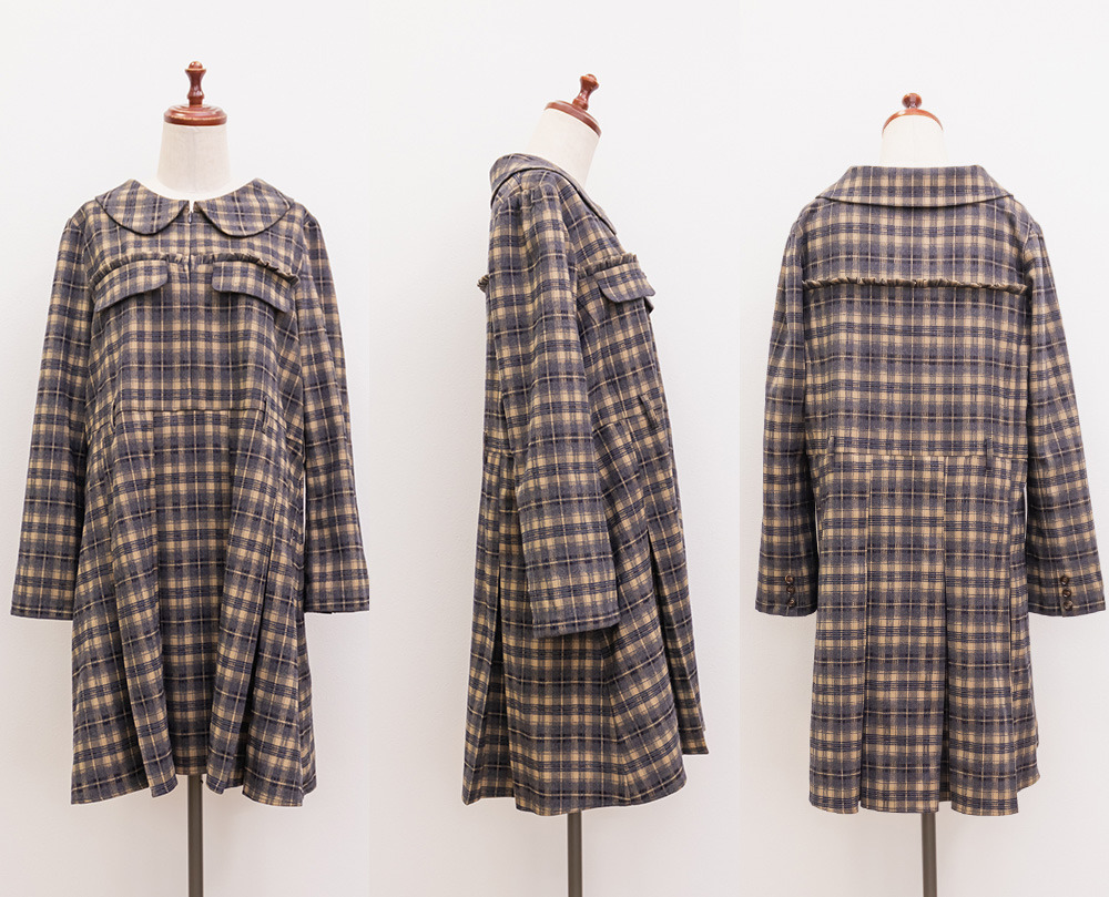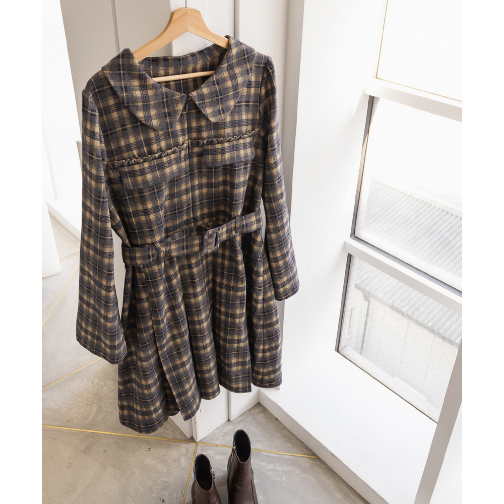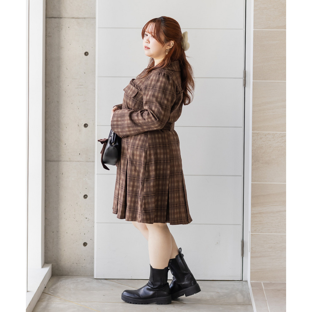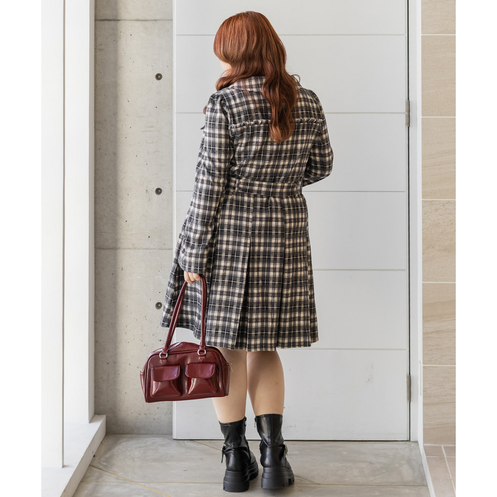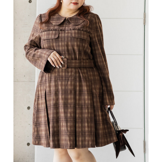 | 3Lサイズを着用していつも通りのサイズ感でした!チェック柄がレトロで可愛くて、1枚でしっかり着映えするワンピースです♪視線が上に集まるデザインなので自然とスタイルアップして見えるのが嬉しいポイント。ウエストベルトでメリハリが出て、体のラインは拾いにくく着用感はちょうどいいです。生地もしっかりしていて安心感があり、ロングシーズン着られそう◎ブーツで大人っぽくまとめたり、靴下合わせでカジュアルにしたりと、雰囲気を変えて楽しめる1枚です♪ |