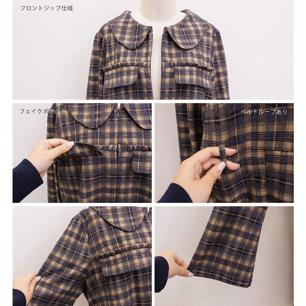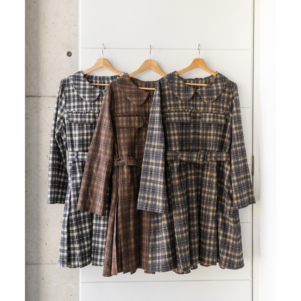 CLETTEオリジナルベルト付きボックスタックチェックミニワンピース