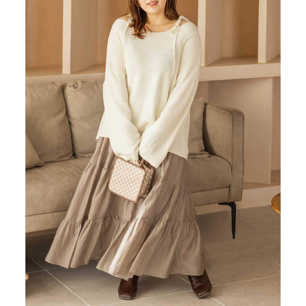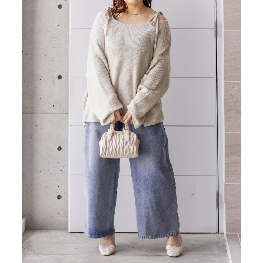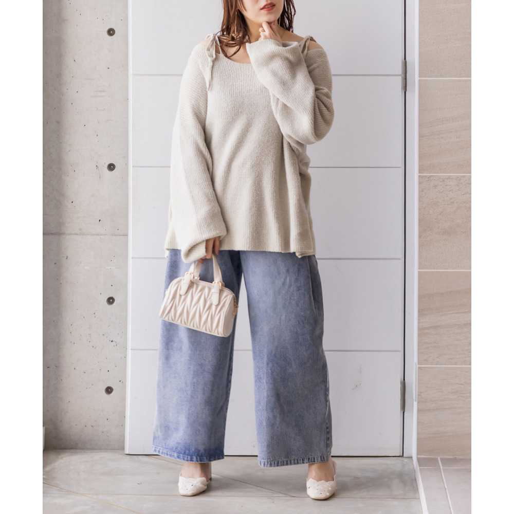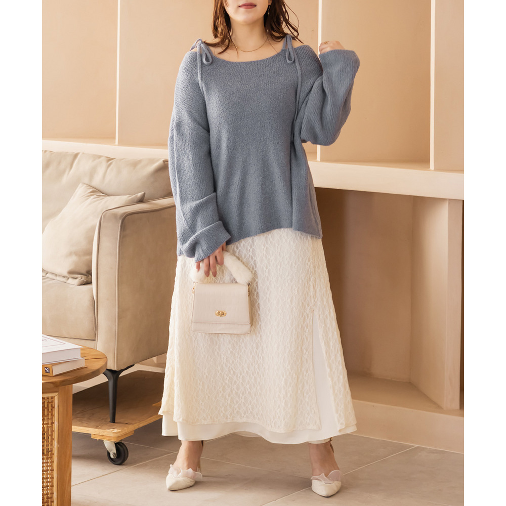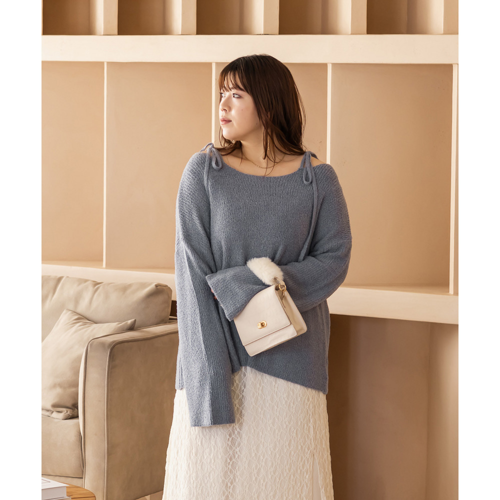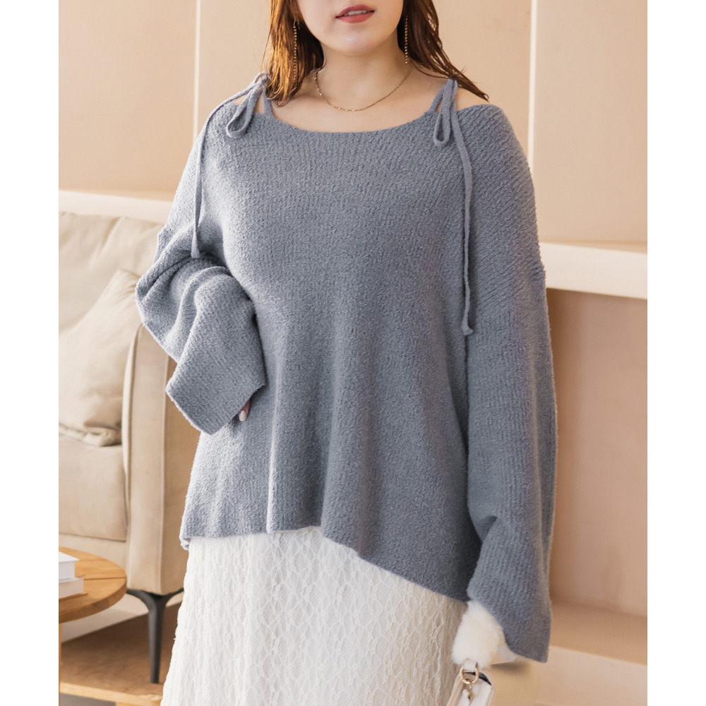 | 3Lサイズを着用して丁度いいサイズでした。ゆるっと着られるサイズ感で楽だしとってもかわいいです♪ルーズ感が今っぽくて絶妙な抜け感が大人っぽい。ネックラインはすっきり開いていて、オフショルになるデザイン。肩にリボンがついているのでずり落ちる心配はなさそうです♪洗練されたスタイルにぴったりなオトナっぽニットで、秋~春と長く使えるのもポイントです。ふわふわのニットなので、ごわつかず、タックインしても着やすい印象です! |