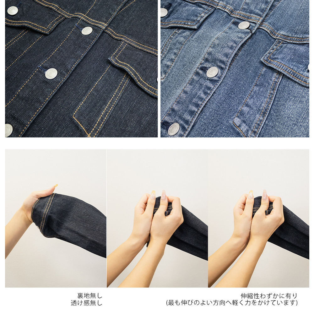 素材 | ■素材 綿98%、ポリウレタン2% ■裏地・透け感・伸縮性 裏地無し、透け感無し、伸縮性わずかに有り ■ポケット 有り ■生地感 一般的なデニム素材です。 |