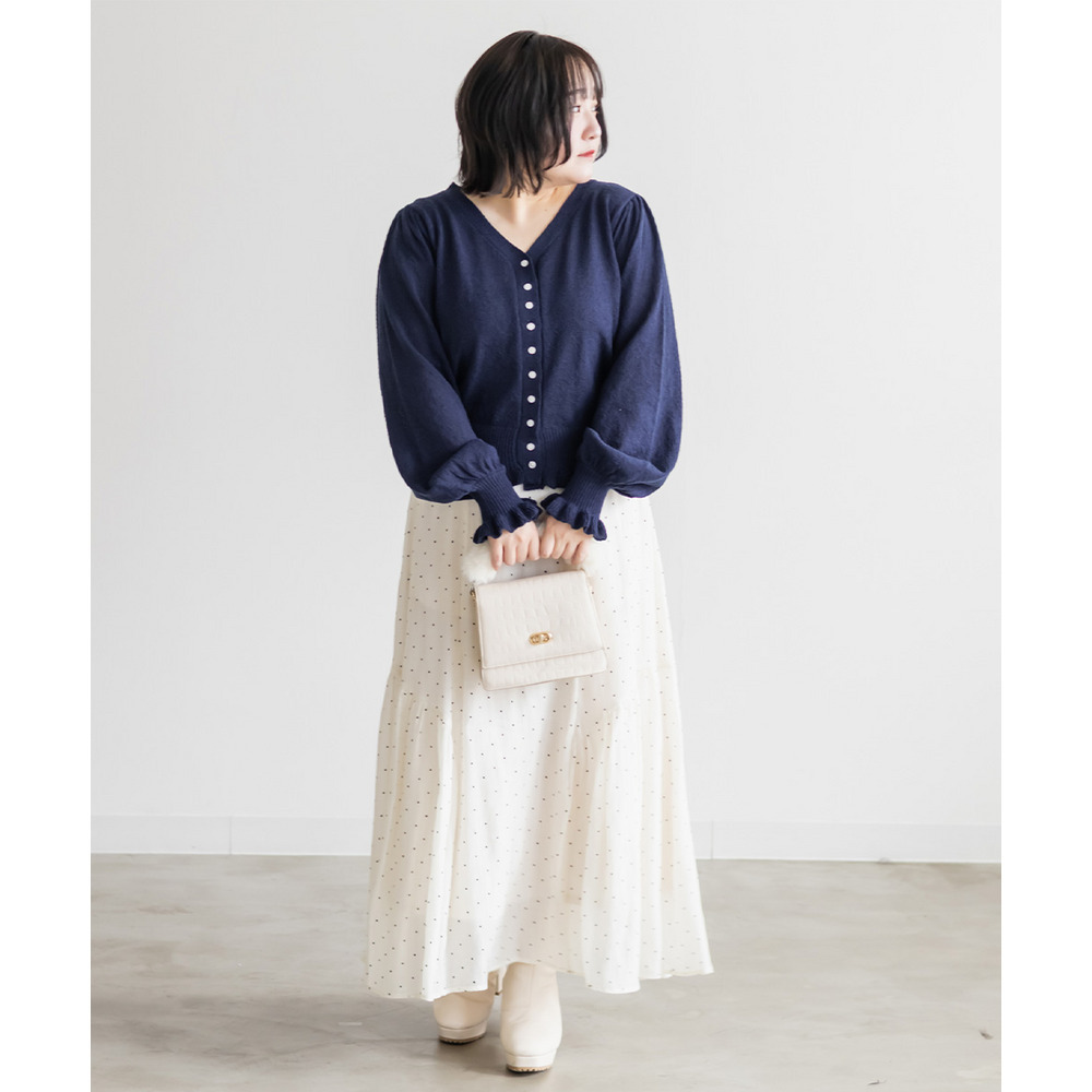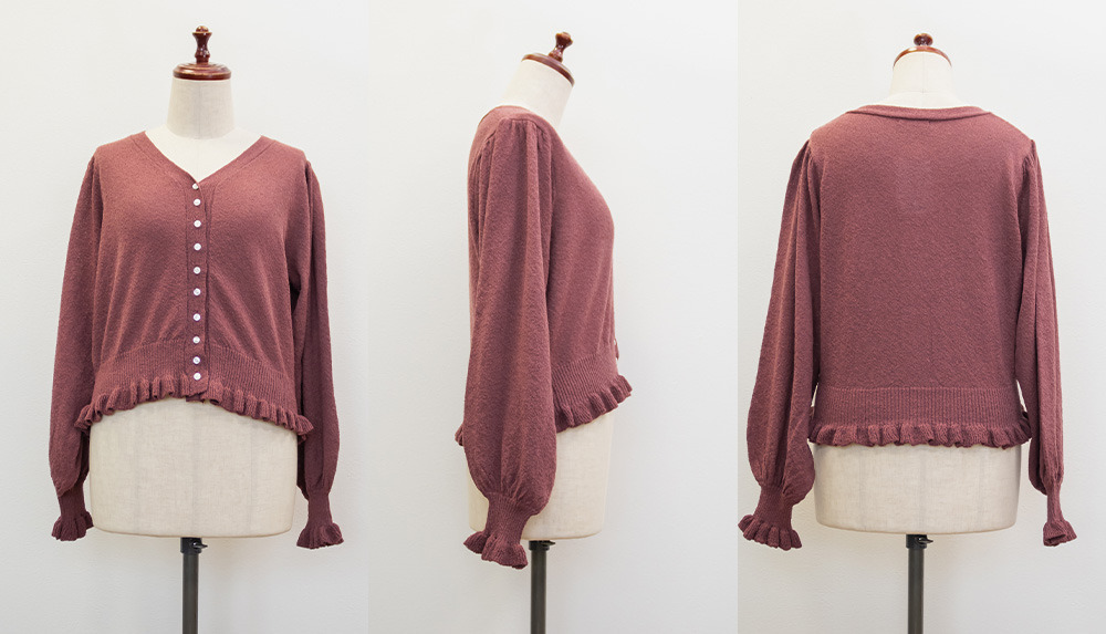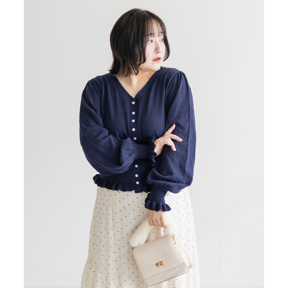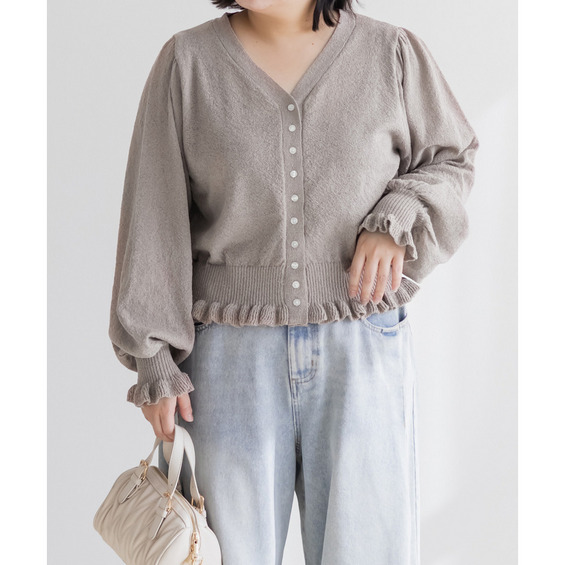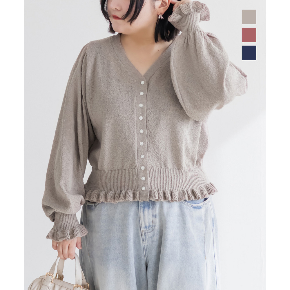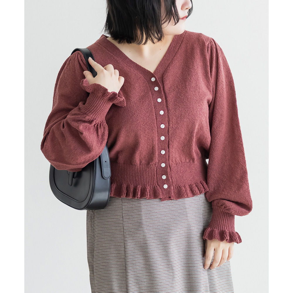 CLETTEオリジナルフリル使いVネックニットカーディガン