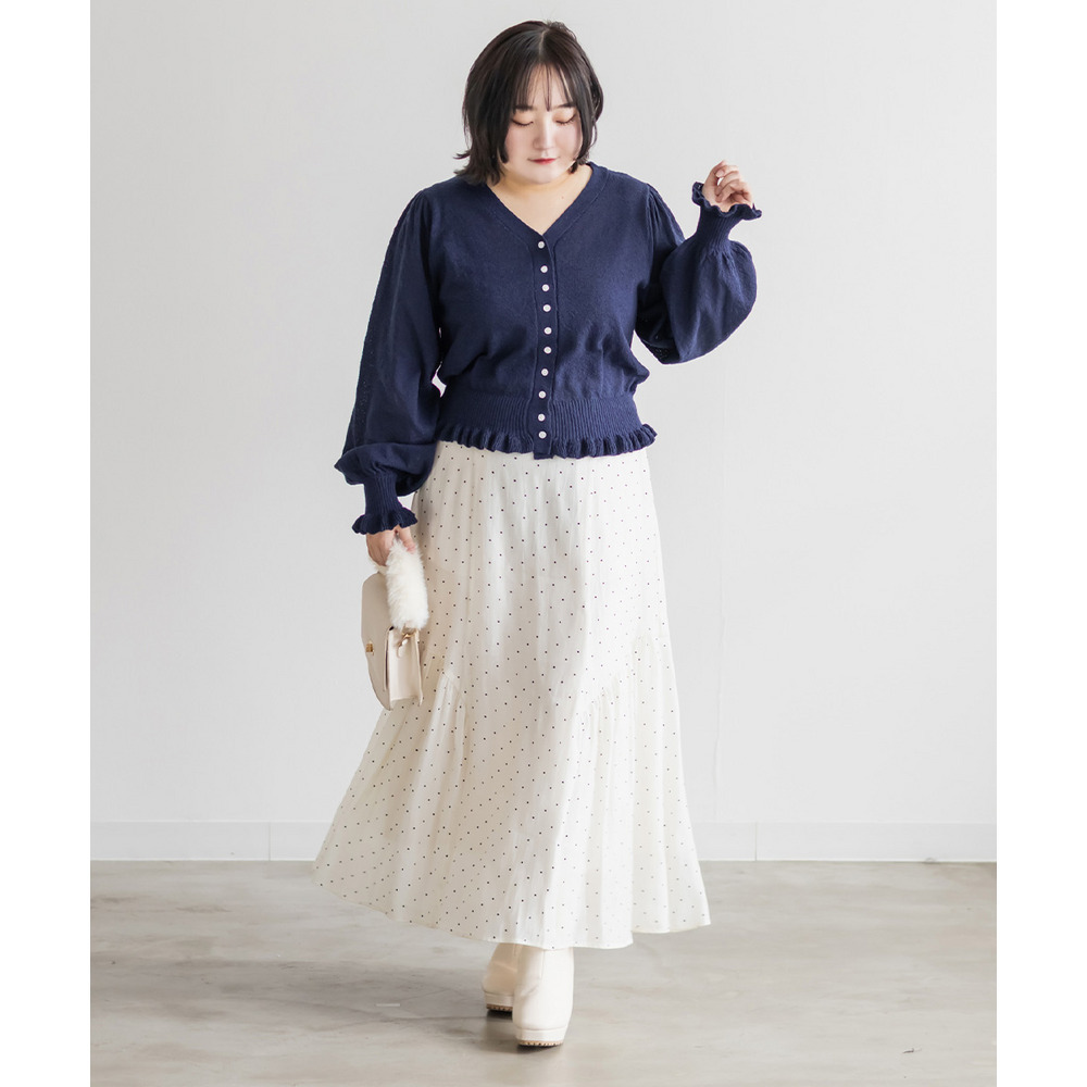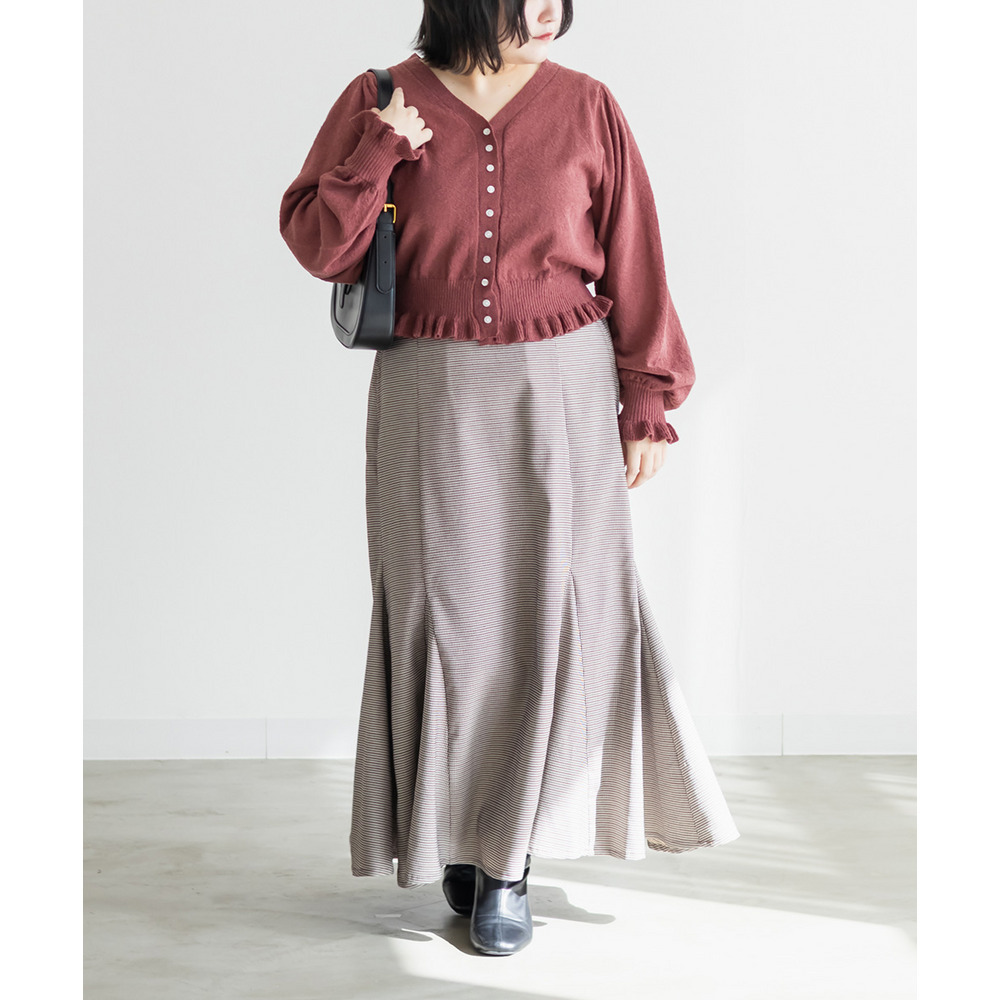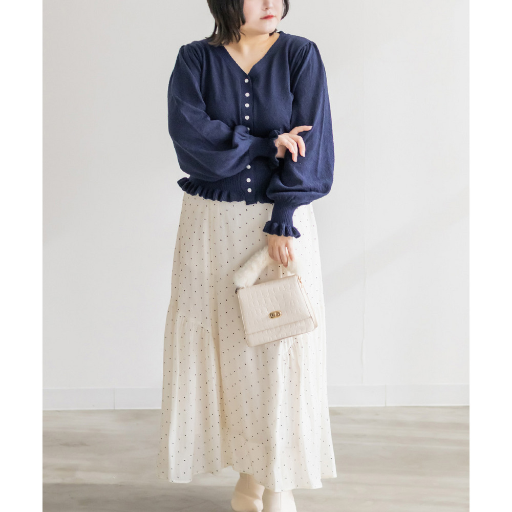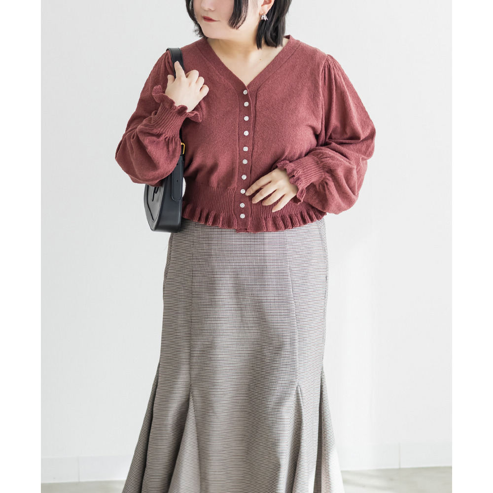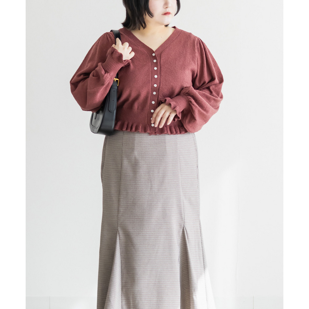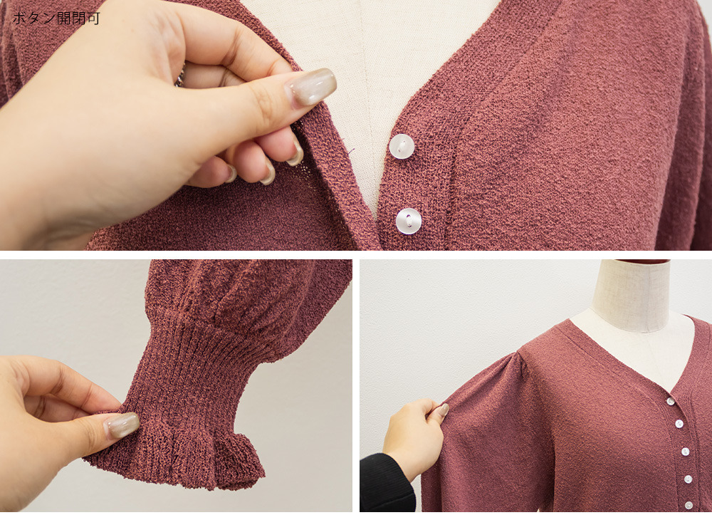 | LLサイズを着用して着心地はちょうどいいです!軽やかでさらっとした肌触りのニット素材で、季節を問わず快適に着られます。袖口と裾のフリルデザインがさりげなく女性らしさをプラスしてくれて、シンプルながらも華やかな印象に◎Vネックが顔まわりをすっきり見せてくれるので、着やせ効果も感じられます。羽織としても、前を閉じてトップス風にも使えるので着回し力抜群♪パンツにもスカートにも合わせやすく、オンオフ問わず使える万能アイテムです。 |