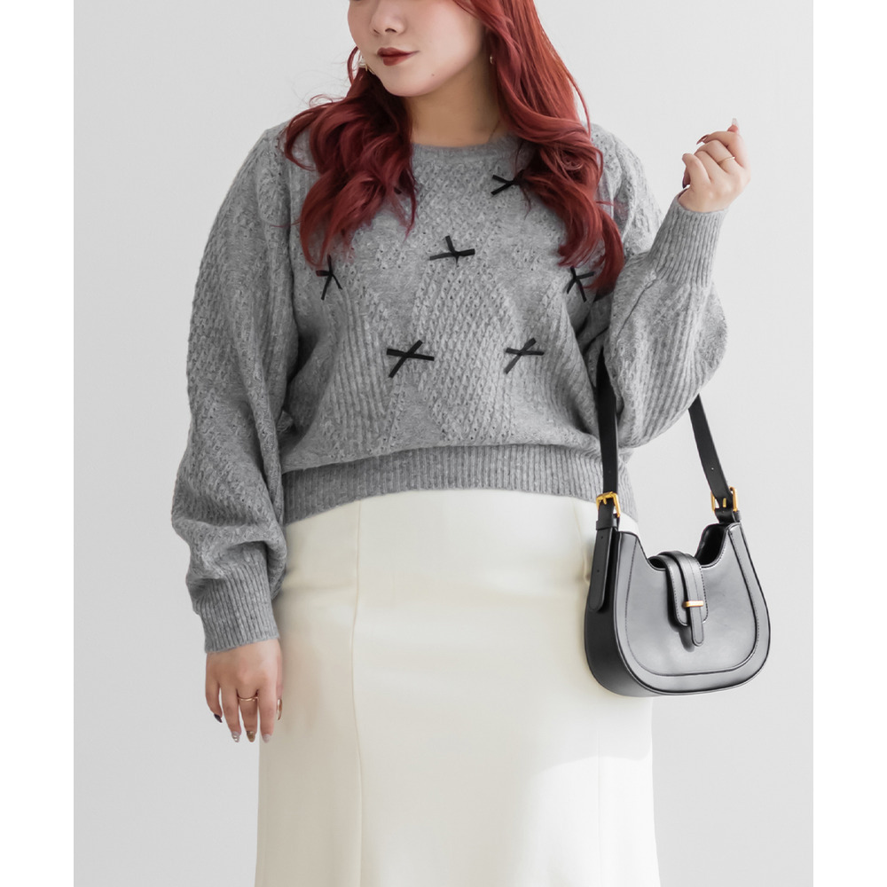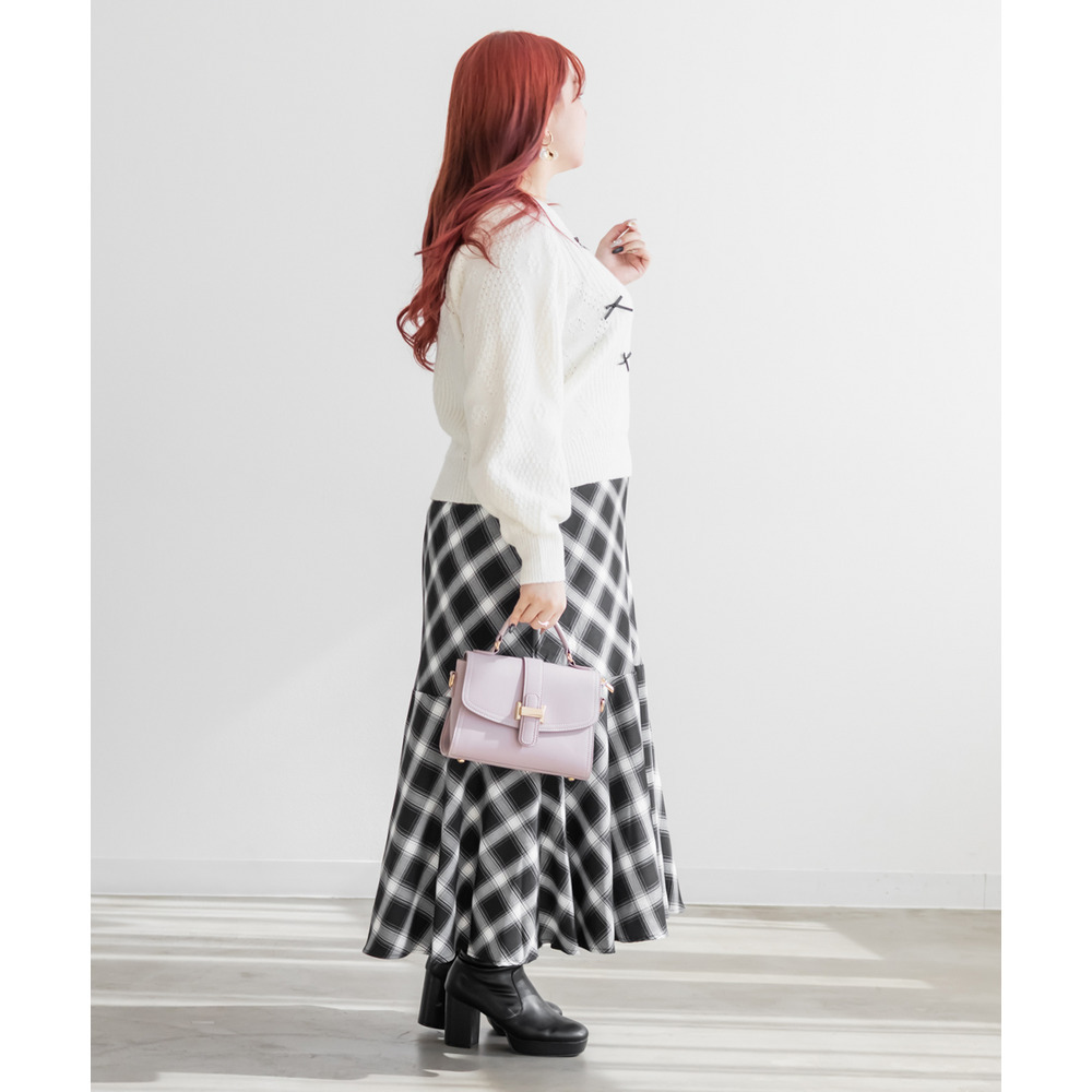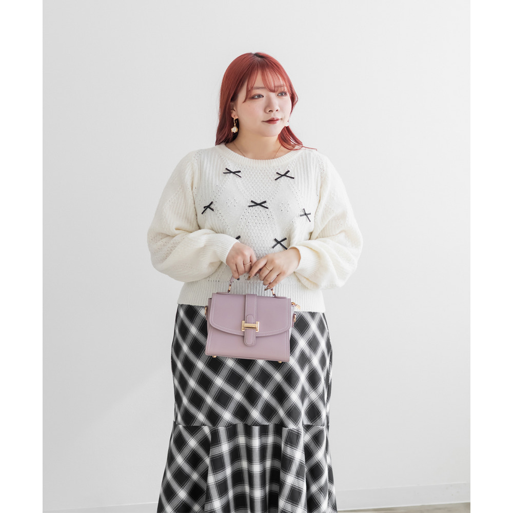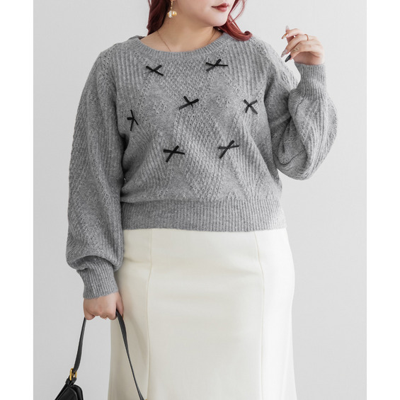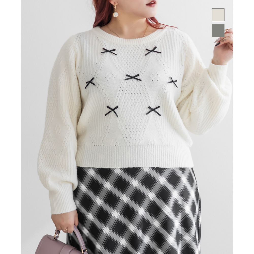 | 3Lサイズを着用してちょうどいいサイズ感でした。程よい丈感でトップスインしなくても着られるのが魅力です◎リボンがたくさんあしらわれたデザインで、ガーリーコーデにぴったり!1枚でかわいくなれるので、シンプルなボトムスとコーデするのがおすすめ!コートなどのアウターとも重ねやすいです! |